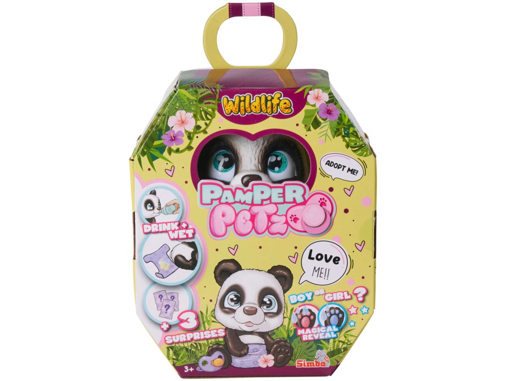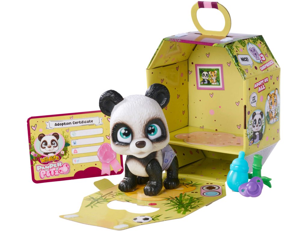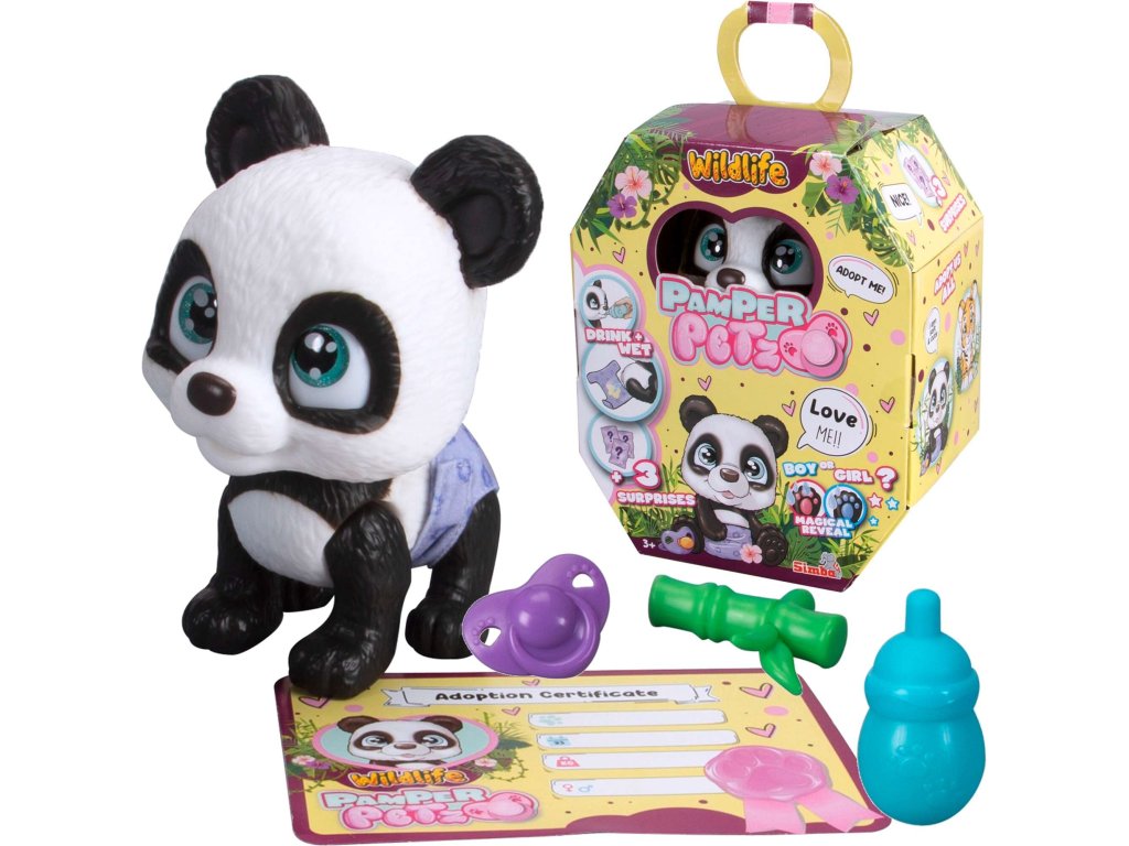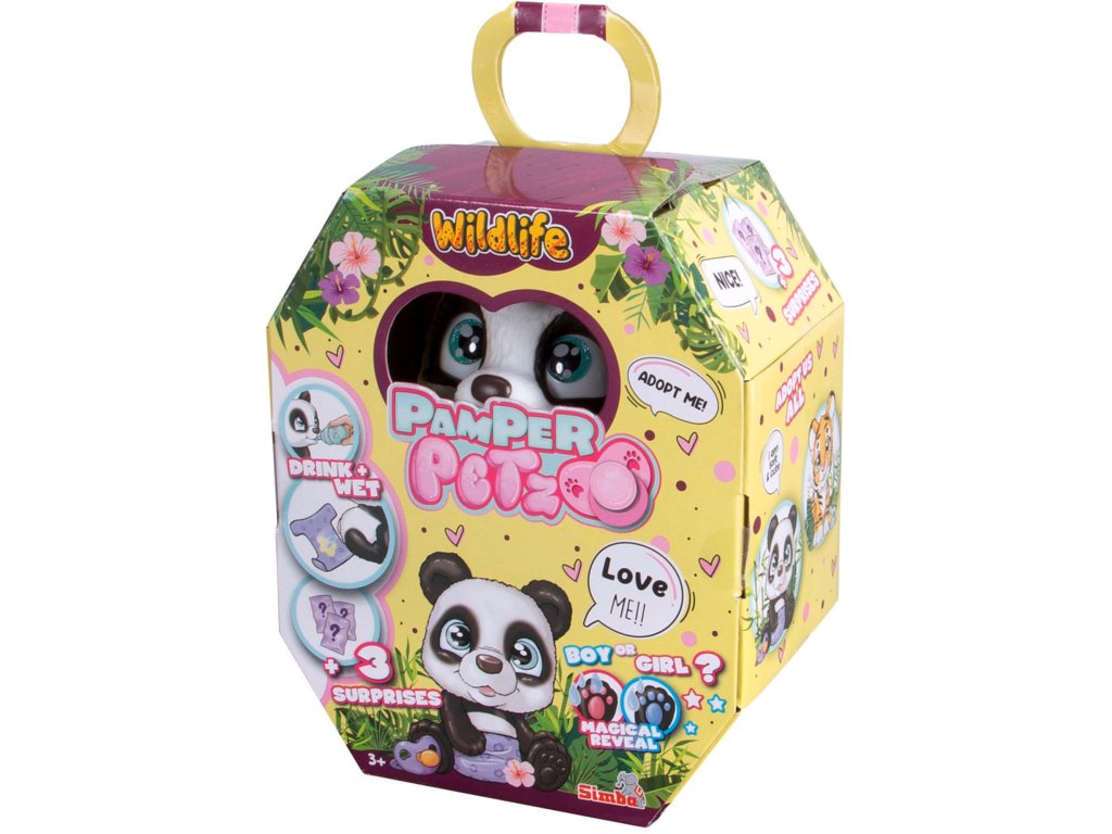 Pamper Petz pets jsou sbírkou roztomilých zvířátek z pelíšků, která chtějí být krmena a opečovávána a hledají svého opatrovníka, který je adoptuje, dá jim jméno a zahrne je láskou. Panda přichází v balíčku, před jehož otevřením nevíme, zda je to kluk, nebo holka.