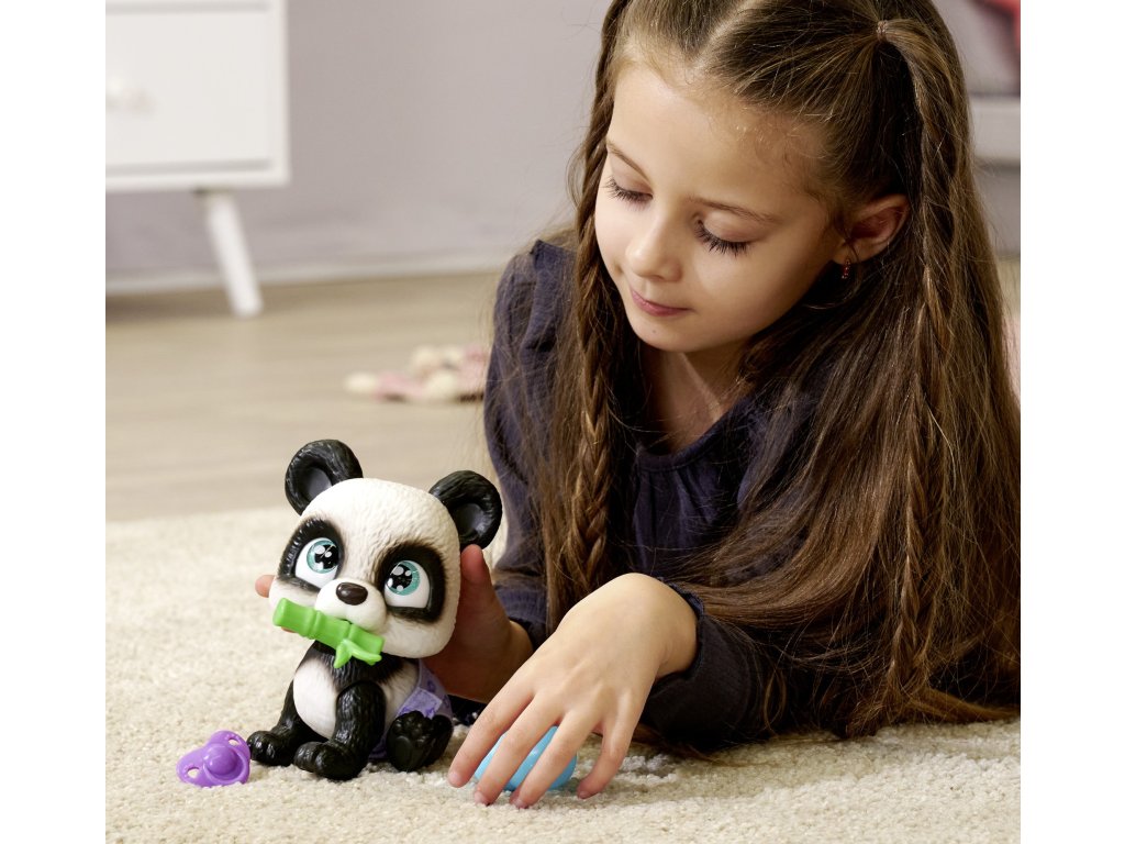 Pamper Petz Panda Interaktivní hračka figurka + příslušenství pro plenkovou bandu
