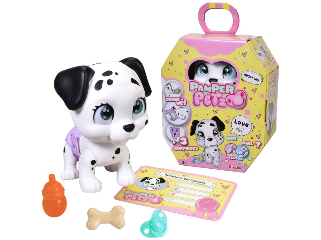 Zvířátka Pamper Petz jsou sbírka rozkošných zvířátek z plenkového gangu, která chtějí být krmena a pečovat o ně a hledají pečovatele, který je adoptuje, pojmenuje a obklopí láskou. Pes je ve svém obalu; dokud ji neotevřete, nevíte, jestli je to kluk nebo holka.