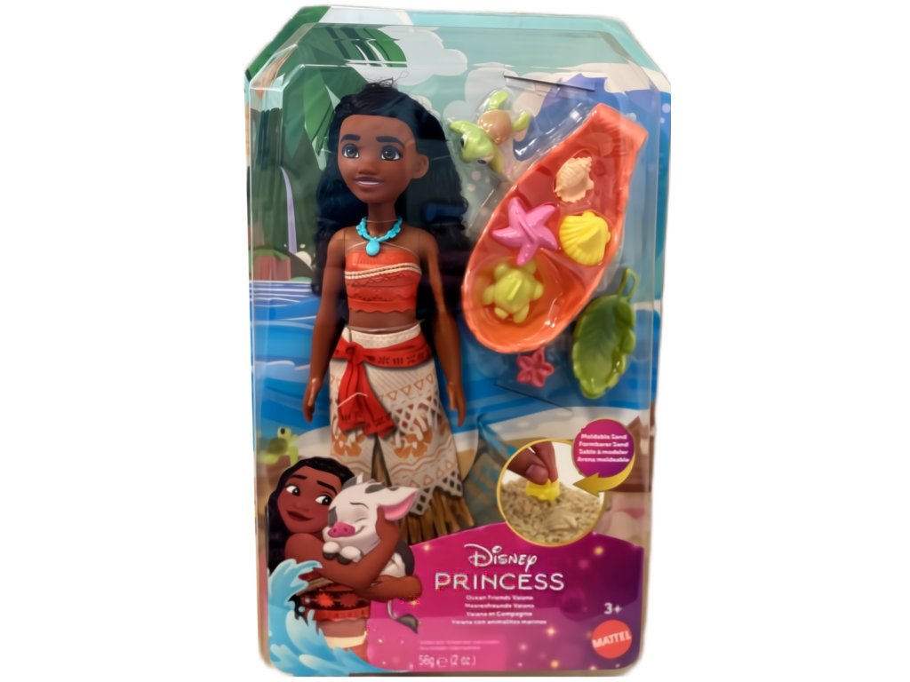 Přineste mořský vánek přímo do dětského pokoje se sadou Mattel Disney Princess "Moana - Ocean Friends" ! Tato panenka, inspirovaná trhákem „Moana“, oblečená ve svém filmovém oblečení – s květinovou sponou do vlasů, zdobeným náhrdelníkem a odnímatelnou sukní – je zve na dobrodružné chvíle na pláži.
