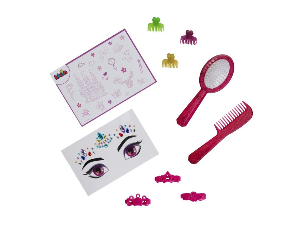 Sada obsahuje vlasové doplňky (kartáč, hřeben a sponky) . Dodávané příslušenství umožní každému malému stylistovi vytvořit mnoho různých účesů , jediným omezením je dětská fantazie.