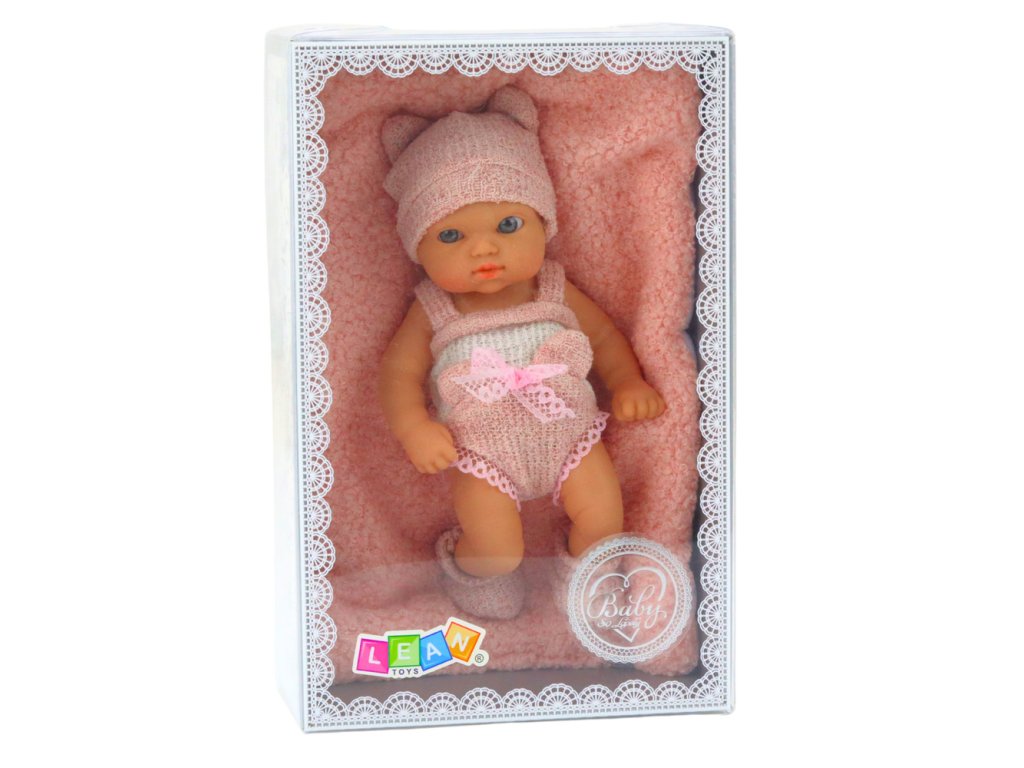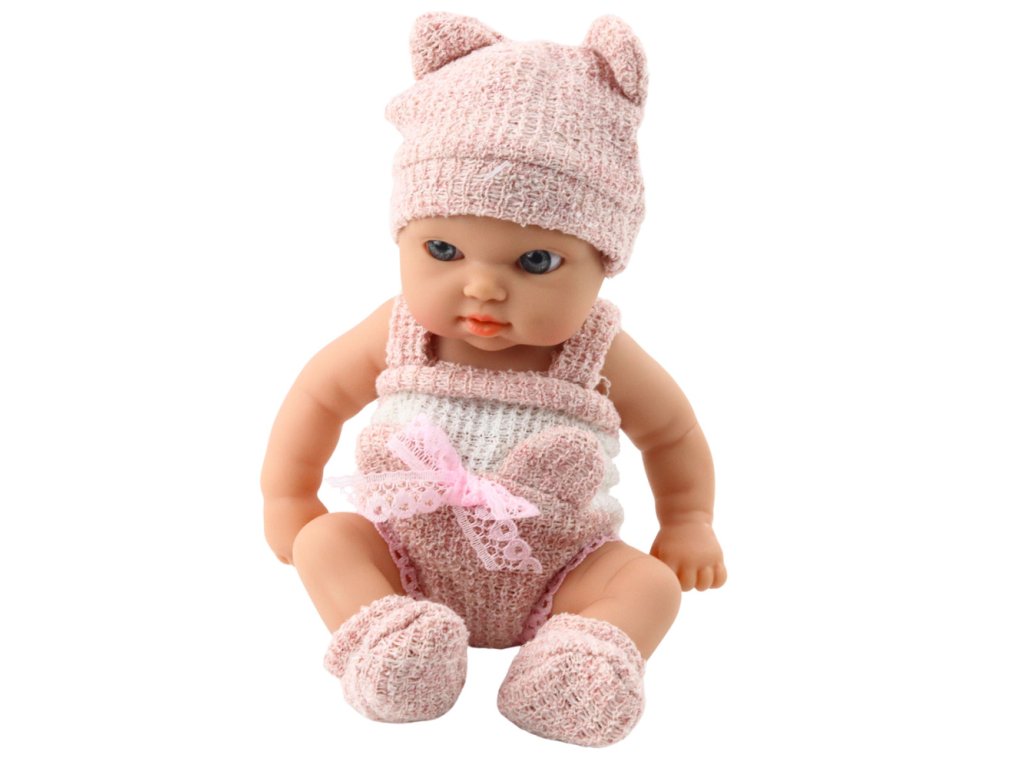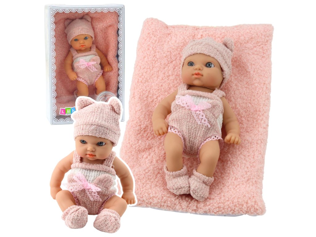 Panenka miminko s dekou, bílo-růžový outfit, čepička, 18 cm