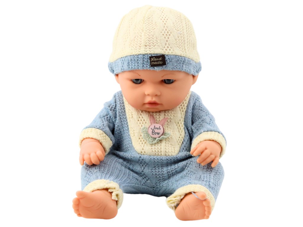 Panenka měří cca. 29 x 15 cm, díky čemuž je dostatečně velká, aby udělala dojem, a zároveň lehká a šikovná - skvěle padne do malých rukou a snadno se vejde do většiny kočárků, postýlek a dalších doplňků pro dětské panenky. Oblečena je do jemného pleteného kompletu v odstínech světle krémové a pastelově modré, zdobené nášivkou, která dodává moderní akcent. Celek doplňuje ladící pletená čepice, zdůrazňující útulný, domácký charakter panenky.