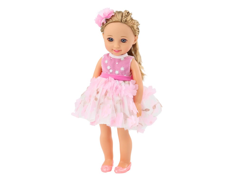 Panenka má pohyblivé ruce, nohy a hlavu, což umožňuje její umístění do různých poloh a dodává jí to realističnost při hře. Díky kombinaci růžových šatů s bílými puntíky se zlatými doplňky a stylovému líčení vypadá panenka velmi elegantně a poutavě.