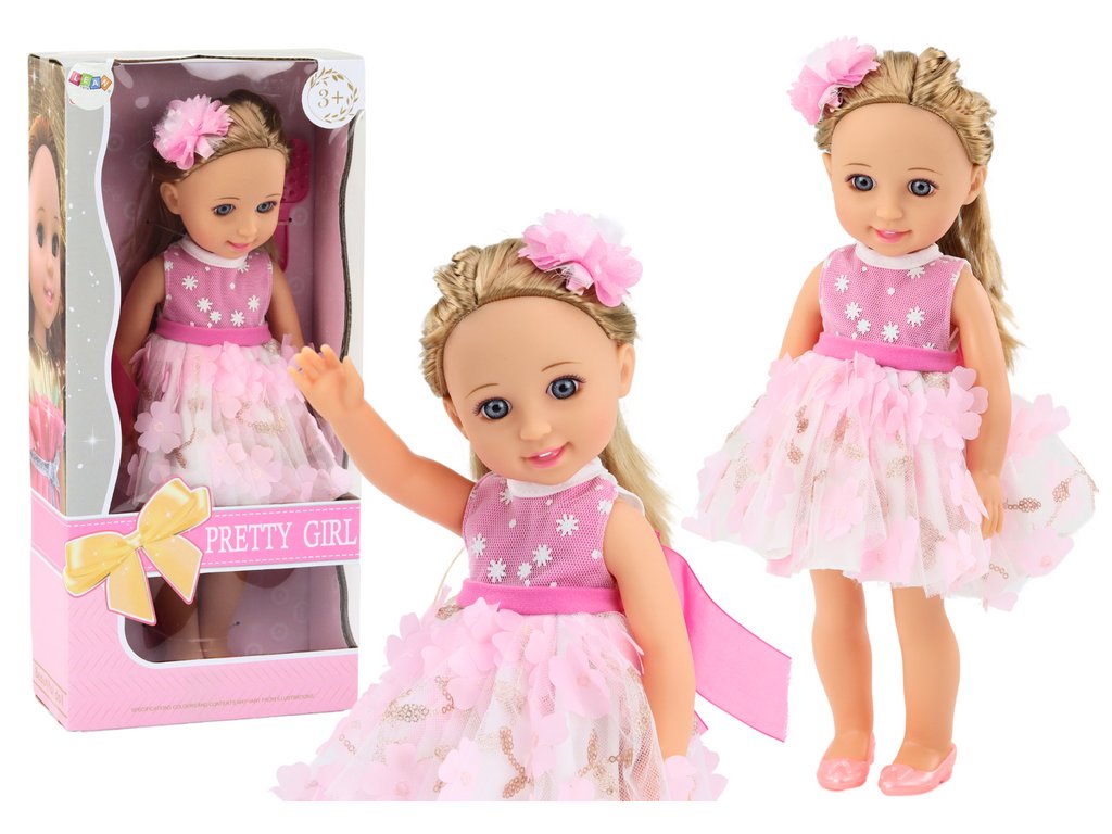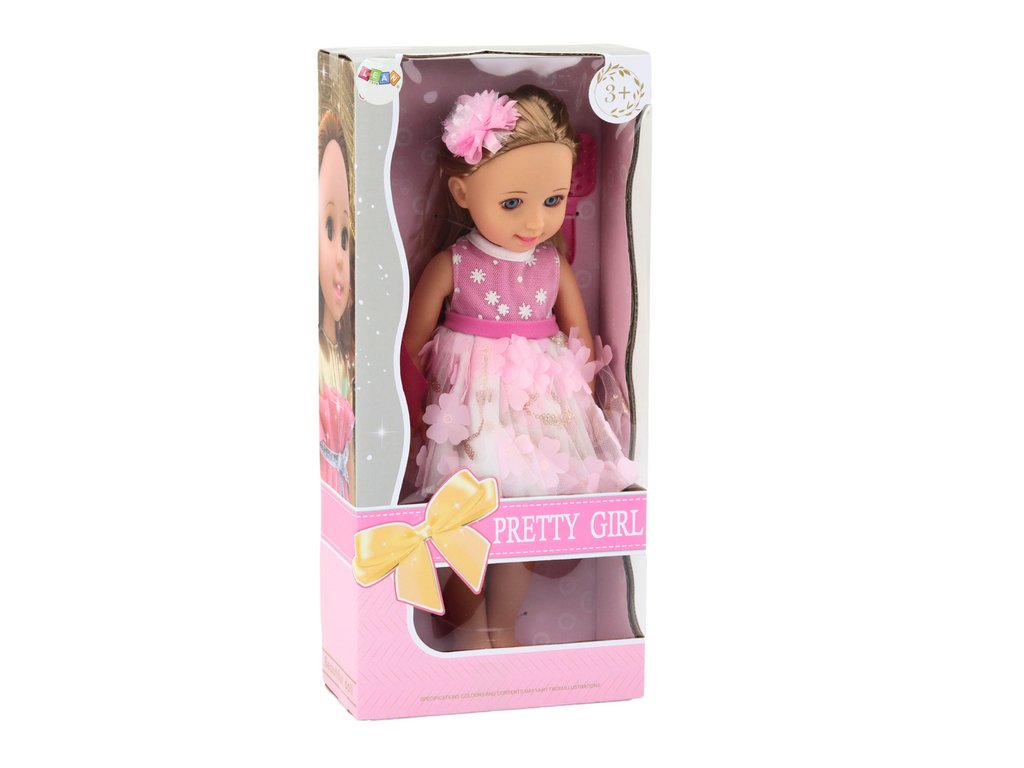 Panenka Růžové šaty Dlouhé vlasy Kartáč na vlasy 38cm