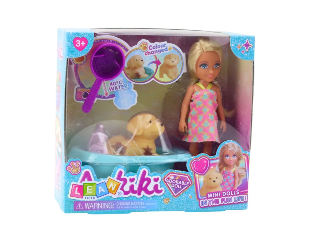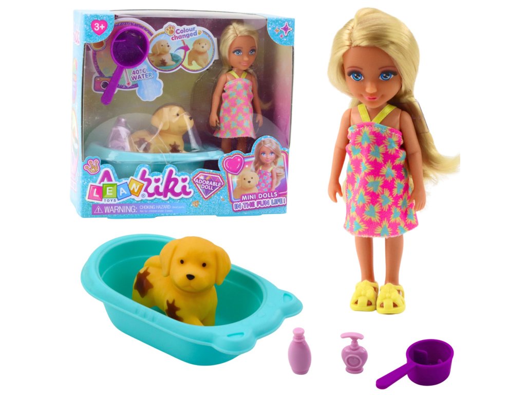 Tato koupelnová sada pro panenku a psa je perfektní volbou pro děti, které si rády hrají na péči o domácí mazlíčky. Sada obsahuje rozkošnou panenku, pejska a doplňky pro koupání a úpravu jejich mazlíčka. Největším lákadlem sady je transformační funkce psa – hnědé skvrny mizí, když je vystavena vodě, takže hra je ještě realističtější a poutavější.