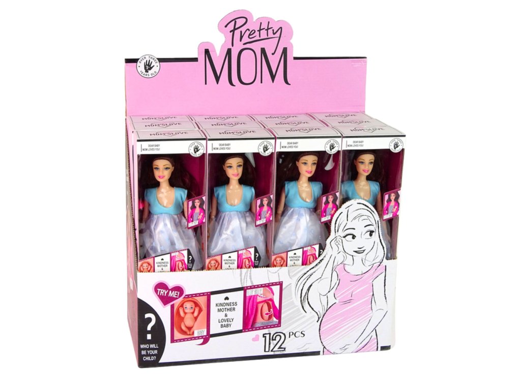 Zveme vás k objevení naší rozkošné těhotné panenky! Tato jedinečná panenka o rozměrech 30 cm x 7 cm x 5 cm má otevírací bříško, které odhaluje rozkošné miminko o rozměrech 3,5 cm x 2 cm x 1 cm. Navíc lze bříško panenky snadno otočit do roviny.