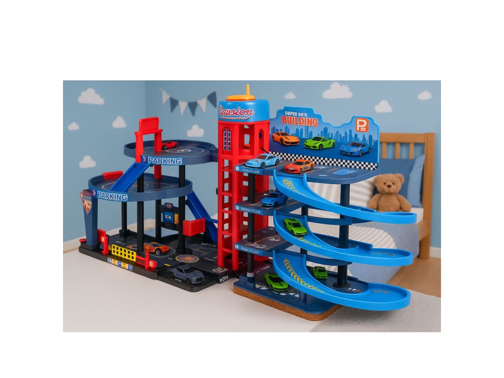 4ÚROVŇOVÉ VÍCEÚROVŇOVÉ PARKOVIŠTĚ S AUTÍČKY A PŘÍSLUŠENSTVÍM PRO DĚTI