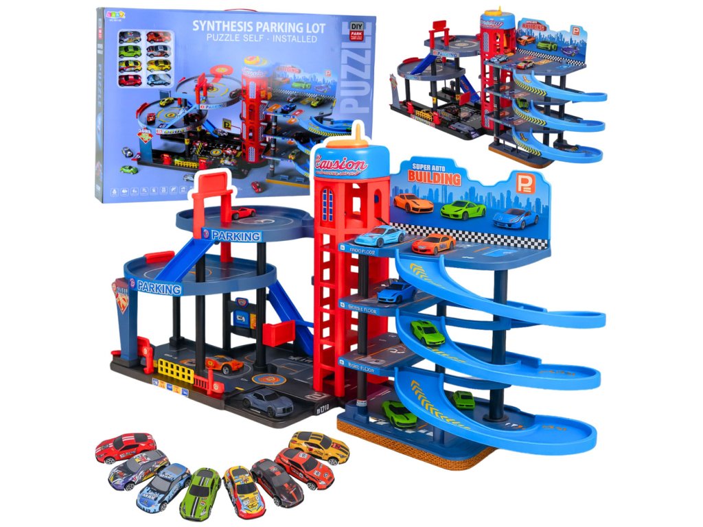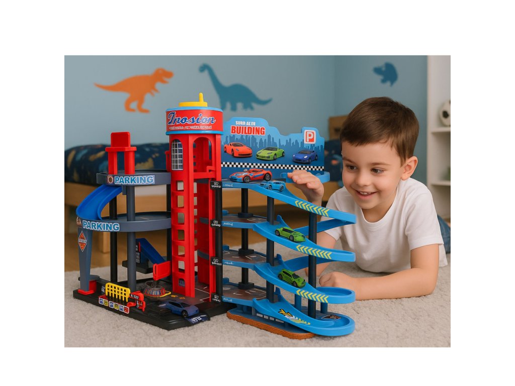 Toto víceúrovňové parkoviště s autíčky je rozsáhlá hračková sada určená pro děti, které milují dynamické hraní s autíčky a vytváření vlastních městských scénářů. Čtyřúrovňová konstrukce umožňuje realistické hraní situací souvisejících s dopravou, parkováním, výjezdy a údržbou vozidel v centru města. Sada nabízí hodiny kreativní a poutavé hry.