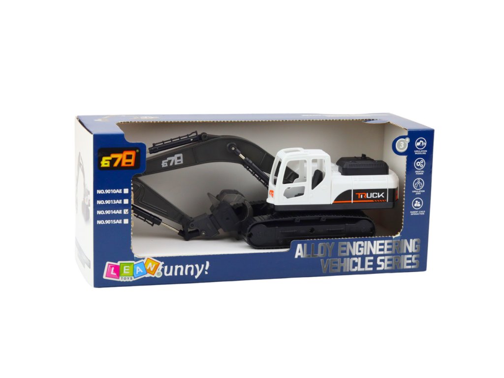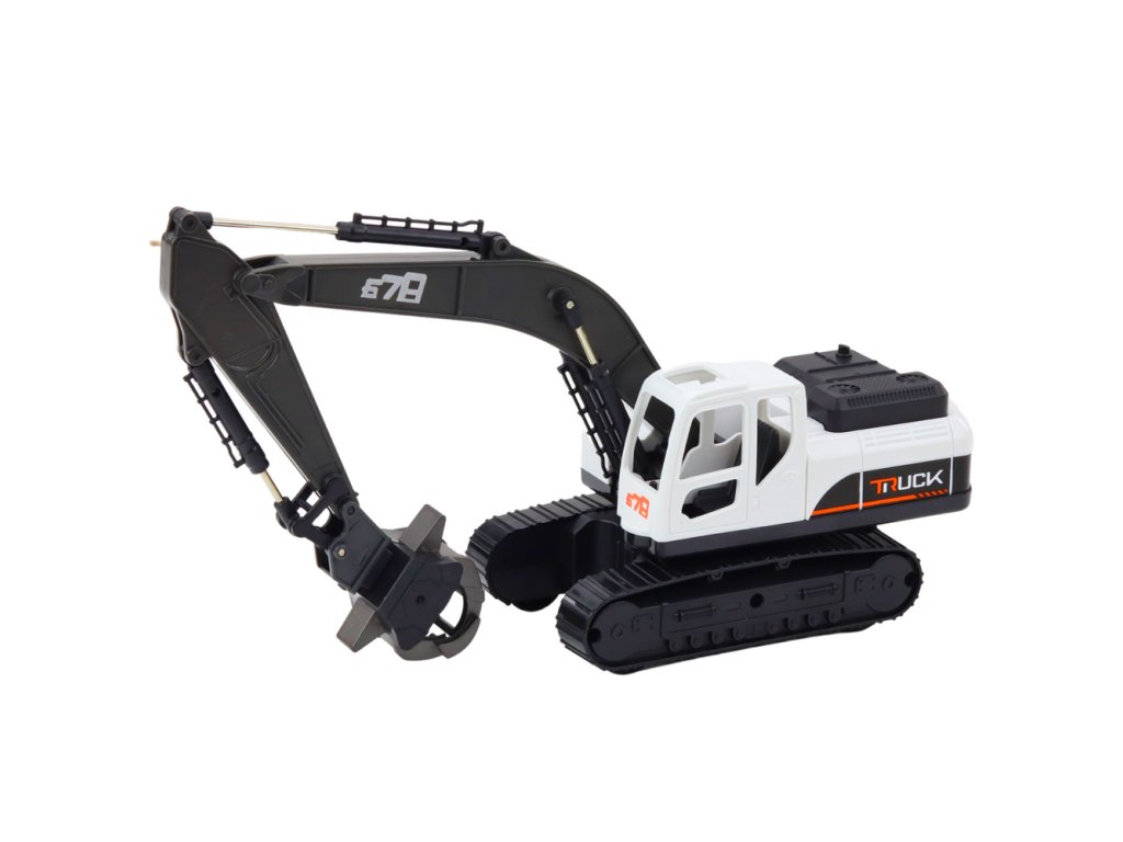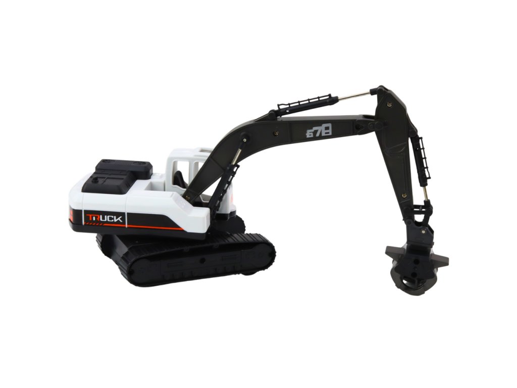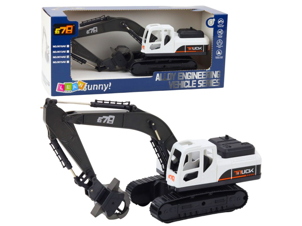 Vybaveno drapákem místo klasického kbelíku, má kloubové rameno s mnoha body pohybu a možností plného otočení základny o 360°. Pásový podvozek dodává modelu stabilitu a masivní vzhled jako u skutečného stavebního stroje. Model v tlumené bílé, černé a šedé barvě se vyznačuje moderním průmyslovým designem.