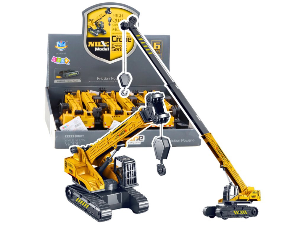 Pásový jeřáb s výsuvným ramenem je realistická stavební hračka, která zavede děti do světa velkých strojů a stavebních výzev. Model vybavený pohyblivým ramenem jeřábu s funkcí zvedání a spouštění háku dokonale odráží provoz skutečného stavebního vozidla. Díky knoflíku namontovanému na boku může dítě ručně ovládat kabel, přesně zvedat a spouštět náklad.