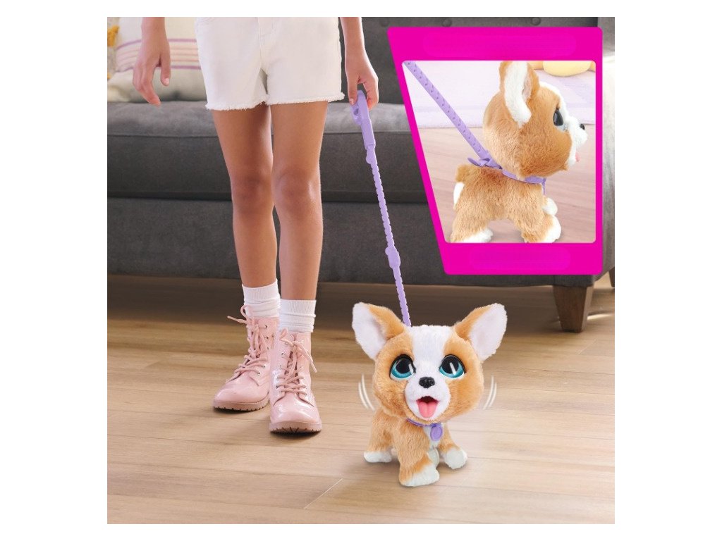 Pejsek FurReal Poopalots na vodítku – jí granule a vykonává potřebu