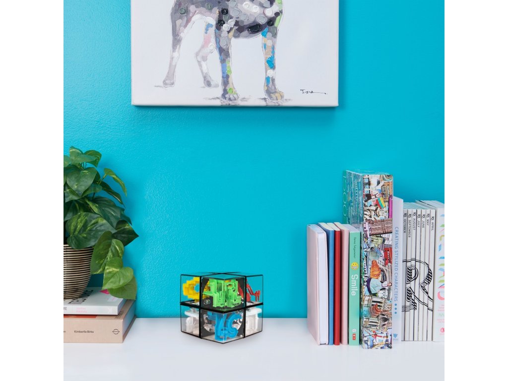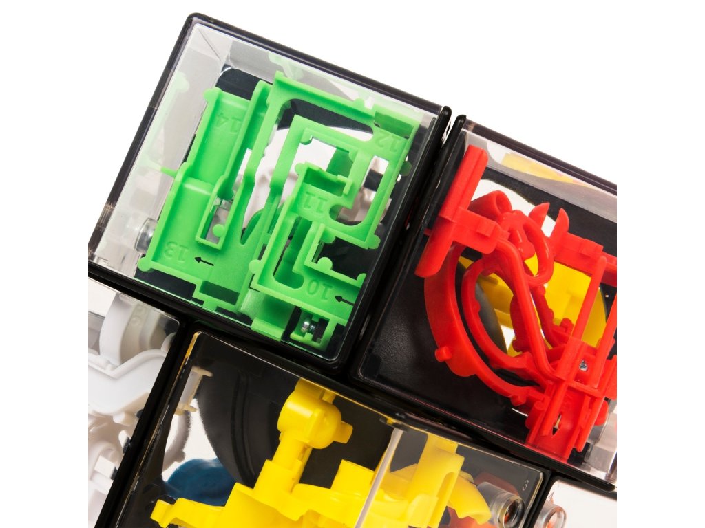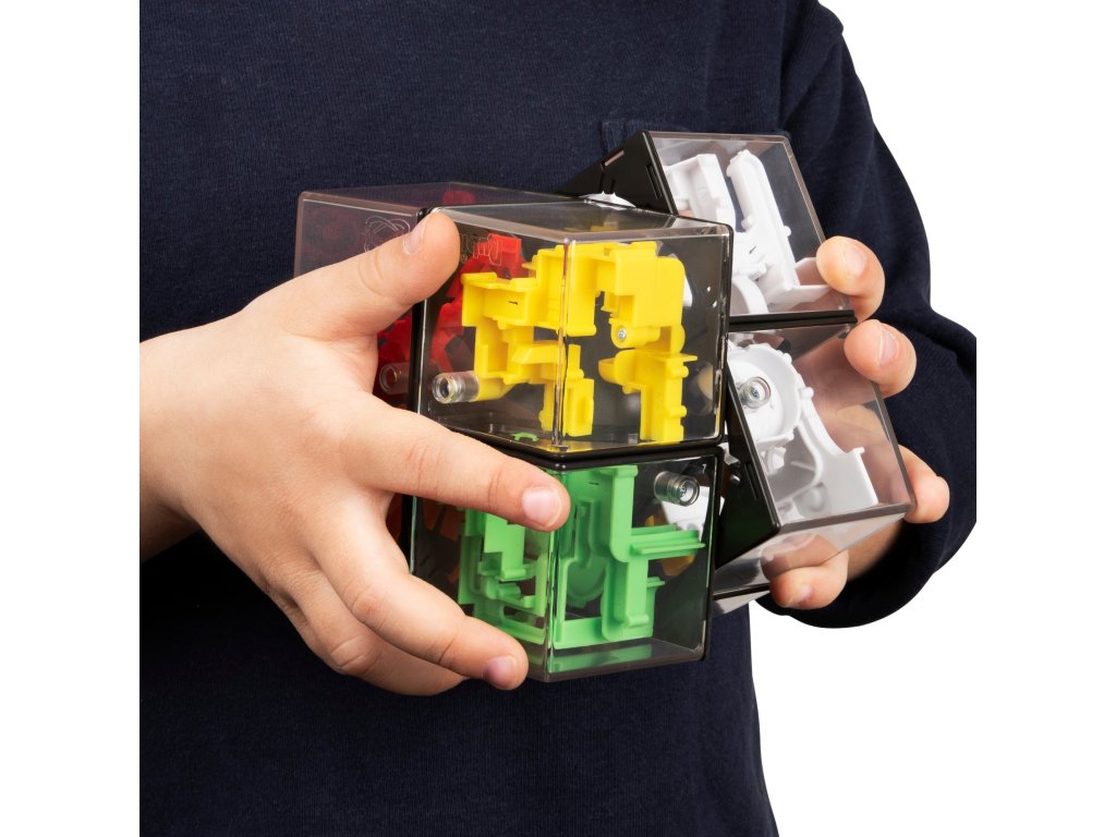 Tato jedinečná kostka má 8 menších dílků, uvnitř kterých je barevné bludiště k řešení. Po vyřešení hádanky můžete vést malý míček od začátku do konce bludištěm.