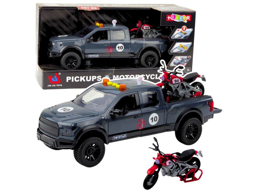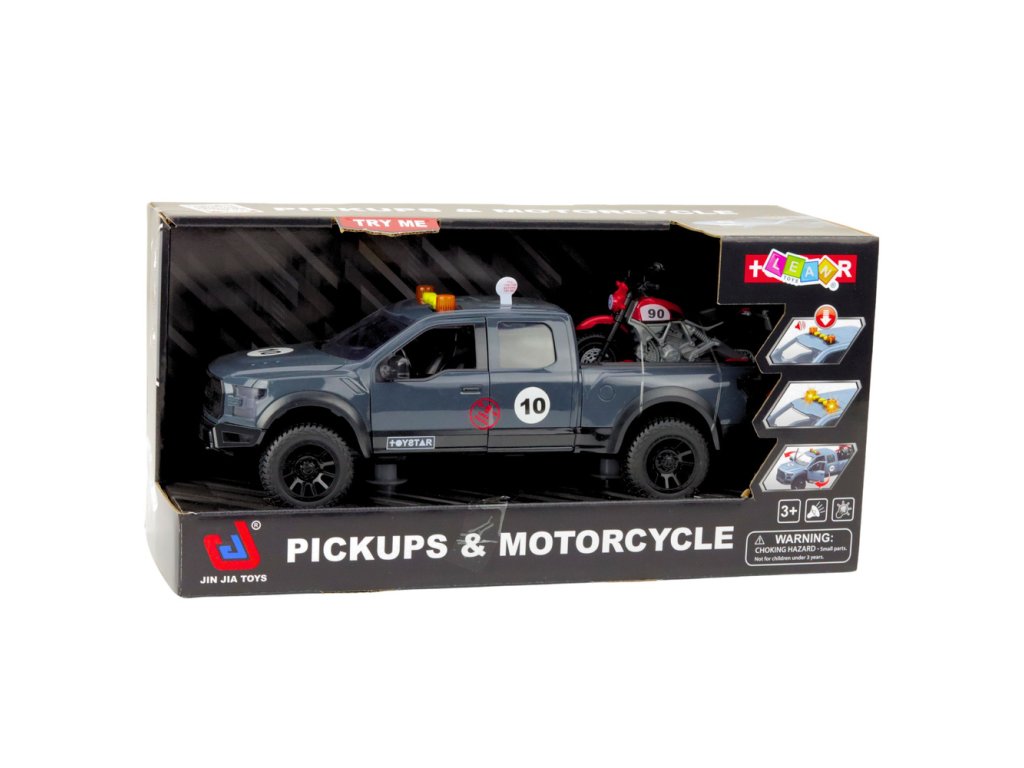 Velký model pickupu s motorkou je ideální hračka pro děti, které milují terénní vozy, realistické detaily a interaktivní hru. Vozidlo bylo navrženo s ohledem na nejmladší motoristické nadšence a nabízí řadu funkcí, které obohacují zábavu a podněcují představivost. Auto má otevírací dveře a zadní klapku kufru, což usnadňuje nakládání motorky a dodává celé konstrukci na autenticitě. Možnost umístění a sejmutí motocyklu z korby pickupu vám umožní vytvářet akční scénáře, záchranné mise nebo off-roadové závody.