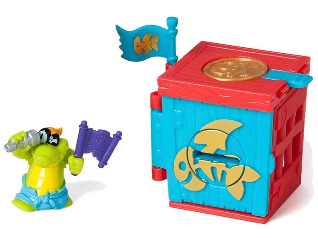 Odemkněte svou pevnost vyřešením tajné kombinace zámku ! Přiložený žeton mince Piratix bude užitečný – odpalte ho z katapultu a poté ho použijte k odhalení kódu, který otevře dveře uvnitř. Teprve pak se dostanete k překvapení ukrytému uvnitř – tajemnému pirátovi Piratixovi a jeho pokladu!