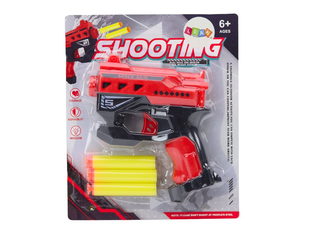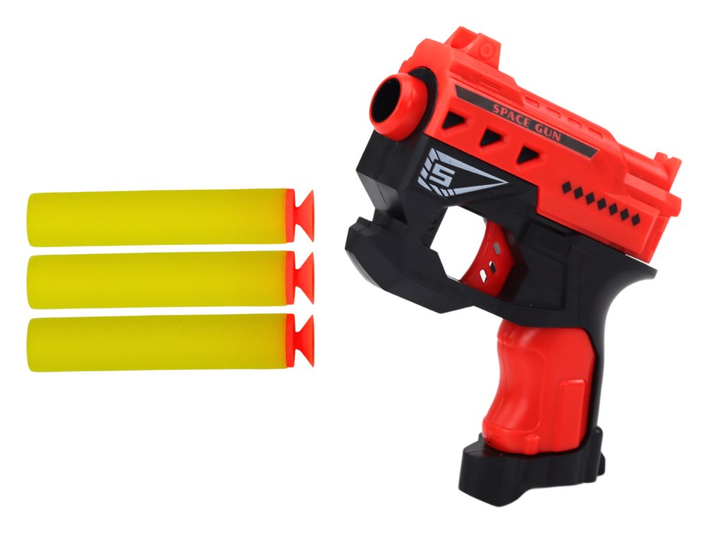 Mini pistole je vyrobena z odolného plastu s intenzivní červenou barvou, která jí dodává atraktivní vzhled pro děti. Díky svým kompaktním rozměrům a lehké konstrukci je ideální pro hraní uvnitř i venku.
