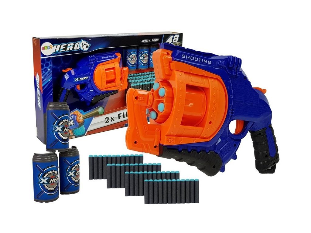 Pistolová pěnová patrona 48 nábojů Rotační zásobník Modrá a Oranžová