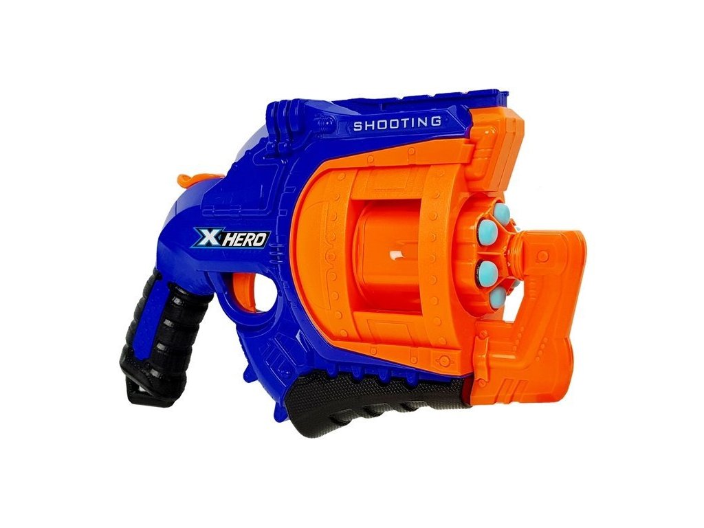 Chcete si procvičit své střelecké umění? Milujete střelbu? Máme pro vás perfektní pěnovou nábojovou pistoli s otočným zásobníkem! Začněte hrát a užijte si sílu a dosah střely! Hračky, které napodobují zbraně, jsou předměty, které jsou ve hrách velmi běžné. Dodávají hře rozmanitost a zároveň pomáhají hrát různé herní scénáře. Jsou to také prvky, které usnadňují procítit roli statečných válečníků a hrdinů z kriminálních filmů. Prezentovaná pistole na pěnové náboje jistě zabere čas na dlouhé hodiny a umožní uspořádat mnoho zajímavých her, které navrhne jejich fantazie.