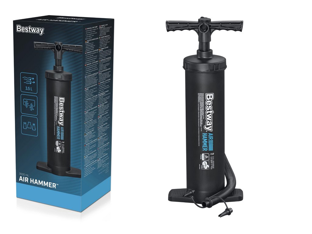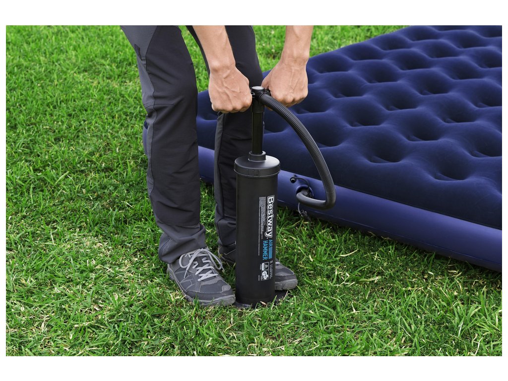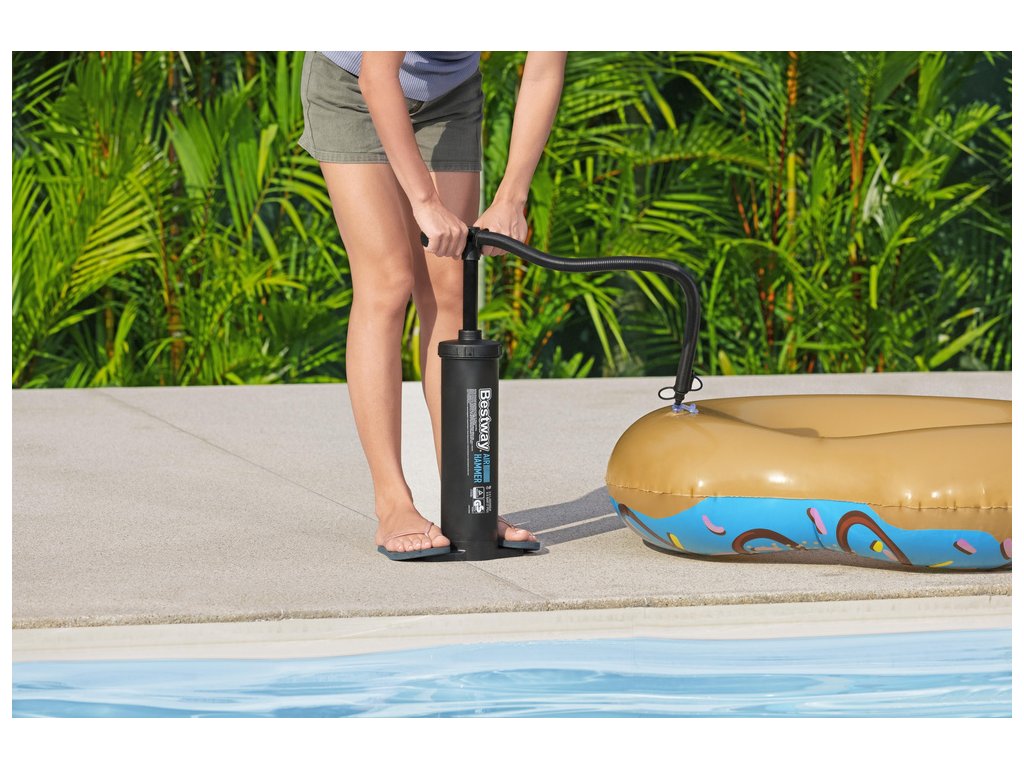 Pokud chcete rychle nafouknout matraci, kruh nebo plážový míček, budete určitě potřebovat pumpu Bestway. Díky vyměnitelným špičkám je ideální pro všechny typy nafukovacích výrobků. Čerpadlo čerpá vzduch při pohybu nahoru i dolů, což efektivně zkracuje dobu čerpání. Díky svému malému tvaru je ideální pro nošení k bazénu nebo na pláž.