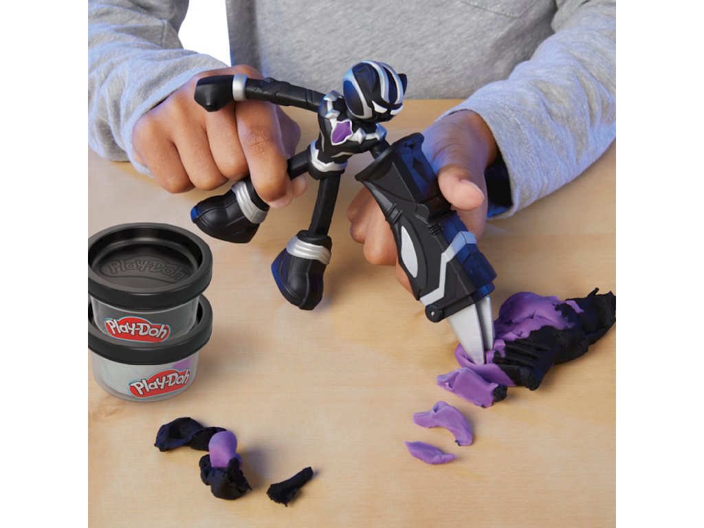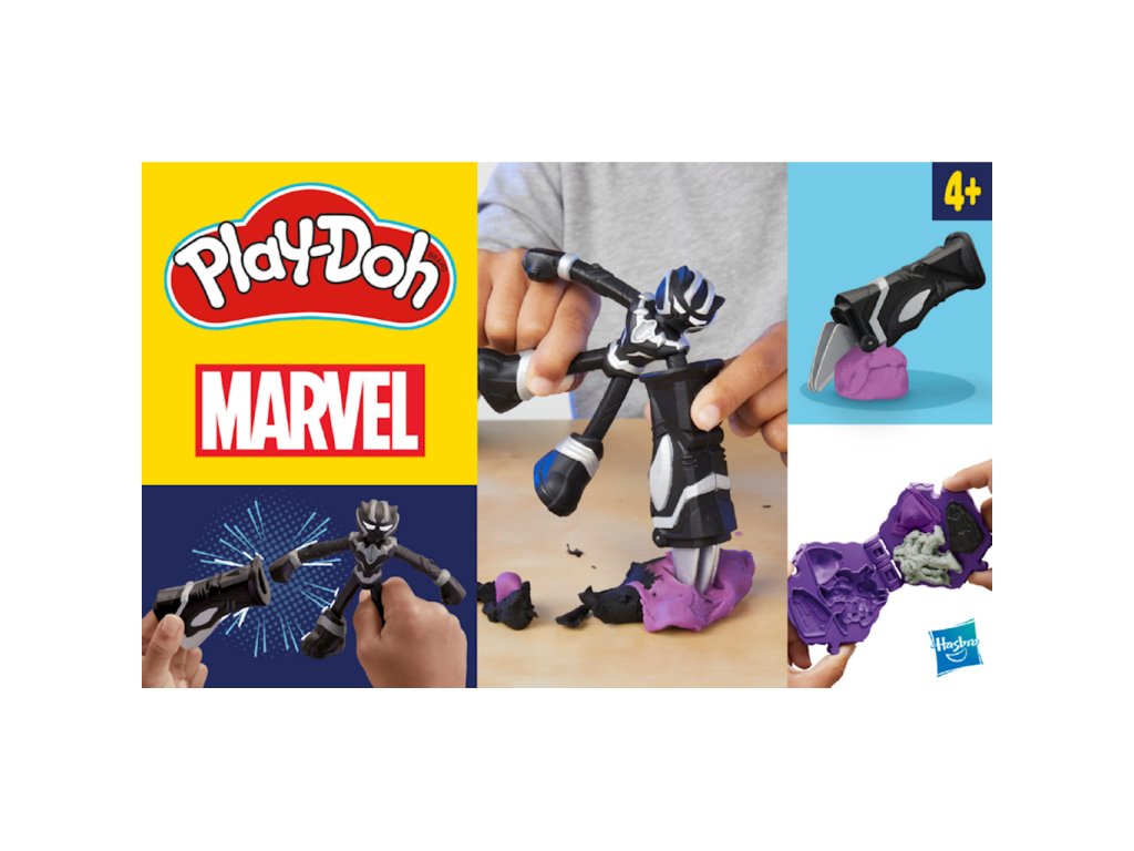 Sada Play-Doh Marvel Play-Doh Černý panter - drápy G0055Seznamte děti se světem Marvelu a kreativní akce se sadou Play-Doh Marvel Černý panter! Tato unikátní sada umožňuje dětem hrát si na vzrušující dobrodružství s Černým panterem, stavět brnění z Play-Doh a bojovat s padouchy z Play-Doh. Sada obsahuje ohebnou, přibližně 10 cm vysokou figurku Černého pantera, jejíž pohyblivé paže a nohy umožňují dynamické bojové pózy. Díky speciálnímu nástroji ve tvaru drápu mohou děti prořezávat překážky z Play-Doh, vytvářet bojové scény a vymýšlet si vlastní příběhy o superhrdinech.