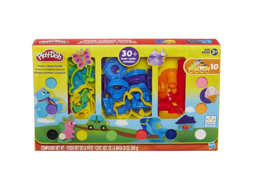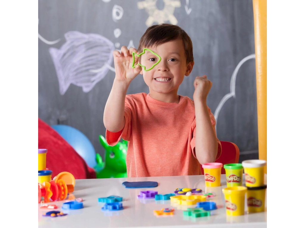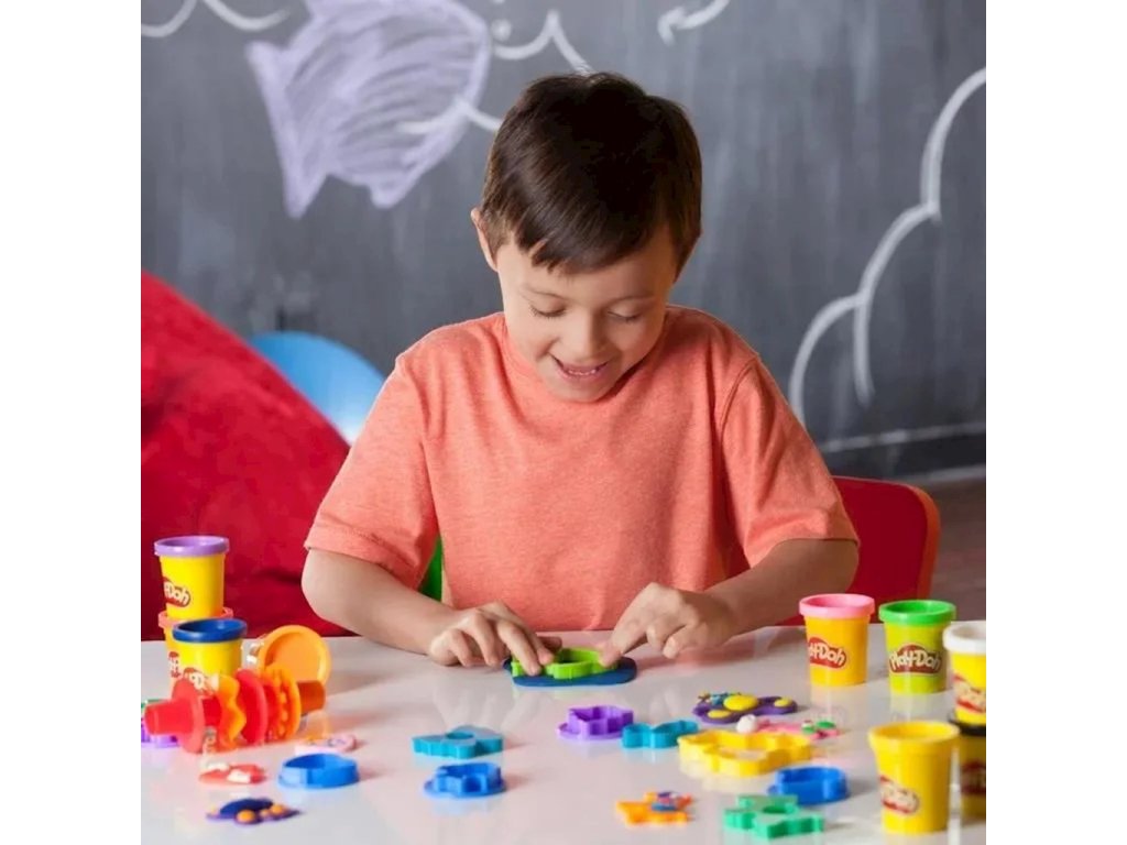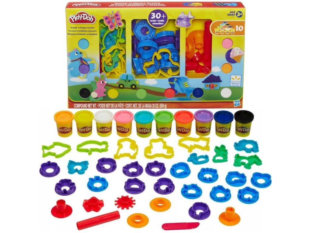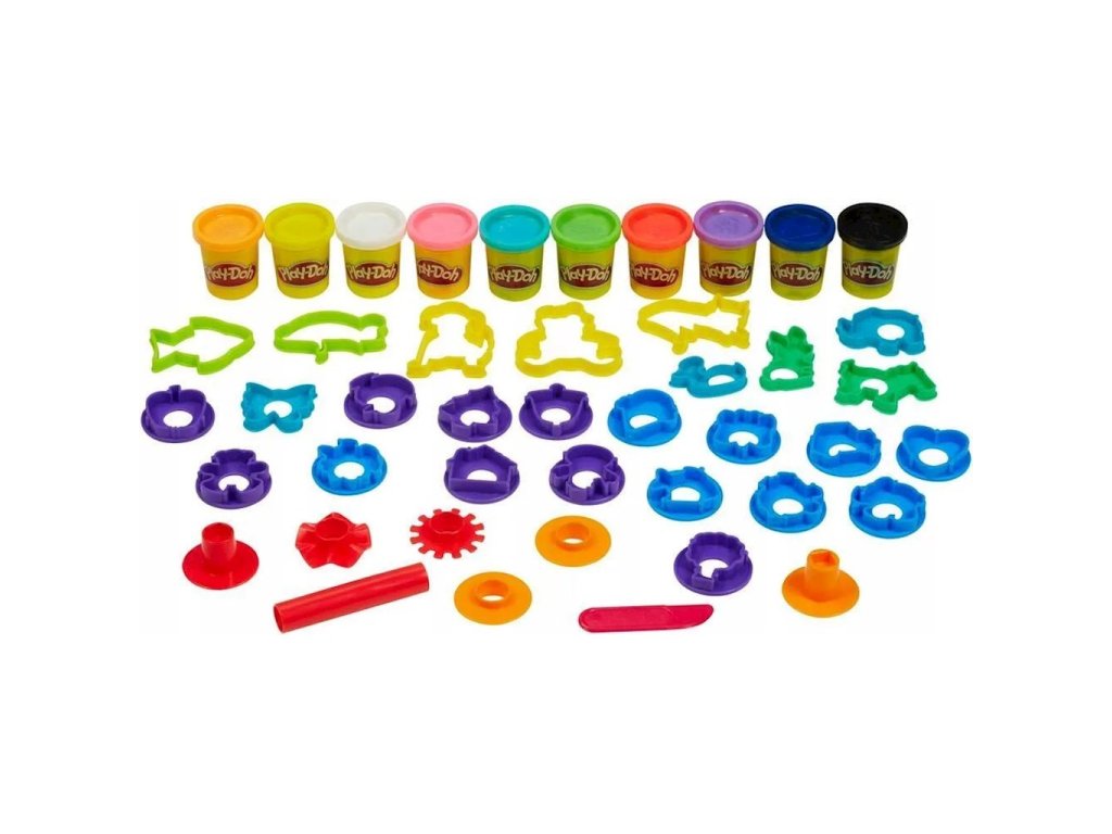 Sada tvarů a razítek Play-Doh, 10 tubiček A9305Sledujte, jak vaše fantazie ožívá se sadou tvarů a razítek Play-Doh pro děti! 10 barev Play-Doh a 30 nástrojů nabízí neuvěřitelné možnosti. Hravé - Děti si mohou vytvářet úžasná dobrodružství pomocí tvarů a razítek k výrobě zvířat, rostlin a předmětů, nebo mohou použít válečky a další nástroje k tvarování čehokoli, co si dokážou představit!