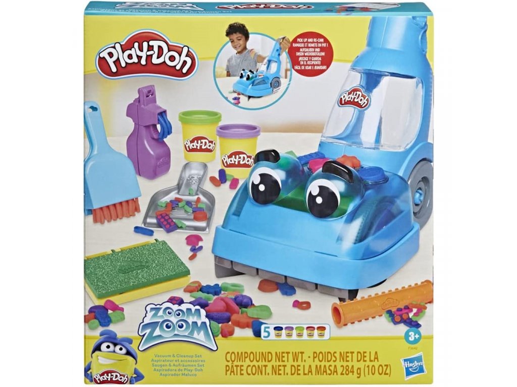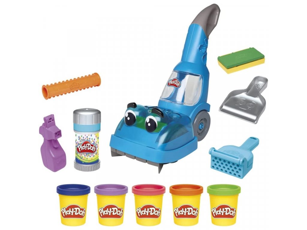 Play-Doh Vysavač a úklidová sada F3642 je ideální pro všechny děti, které rády uklízejí. S touto sadou spojíte příjemné s užitečným, tj. hraní si na nepořádek a následný úklid. Vysavač Play-Doh skutečně sbírá kousky těstacololina. Děti si zamilují jízdu na vysavači, aby viděly, jak sbírá kousky těstoviny do prázdné nádoby pro pozdější opětovné použití.Součástí sady je také 5 tub Play-Doh a 6 doplňků, včetně lopatky, ždímače, štětce, válečku na ručníky a nástroje na tvarování, který může vysavač sbírat. Objevte nový rozměr zábavy s touto skvělou sadou Play-Doh.