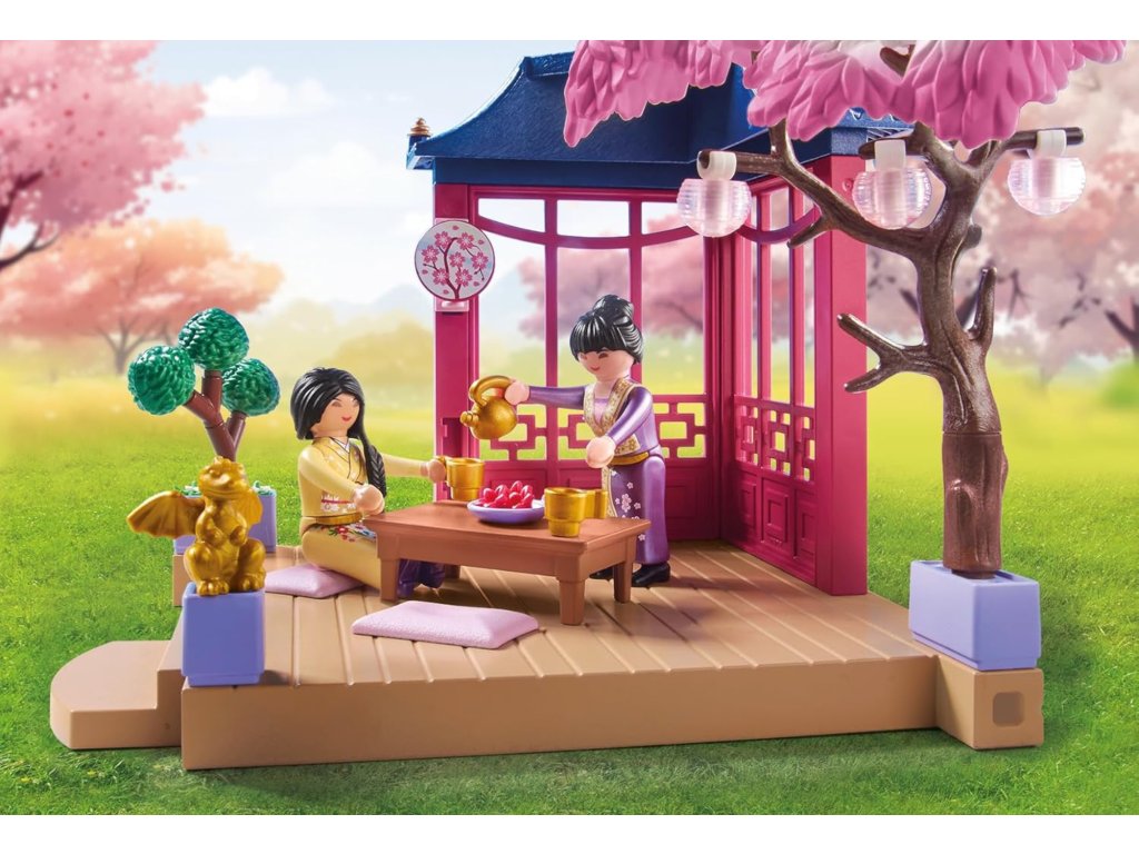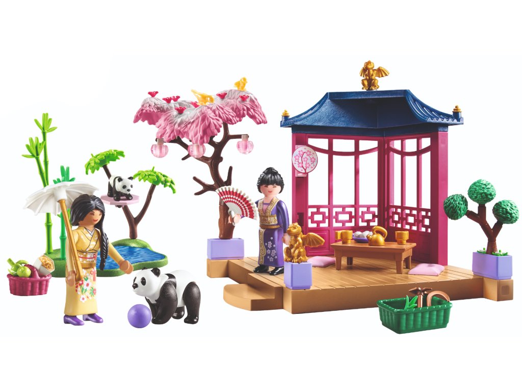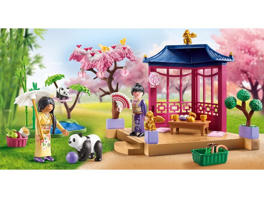 Tato sada zobrazuje kouzelnou asijskou zahradu s pandami a čajem, inspirovanou asijskou kulturou. Je tam rozkvetlá třešeň, dvě rozkošné pandy a hrdinky čajového obřadu. Četné příslušenství umožňuje realistickou hru a zabaví děti na několik hodin. Toto je perfektní sada pro rozvoj vaší představivosti a učení hrou.
