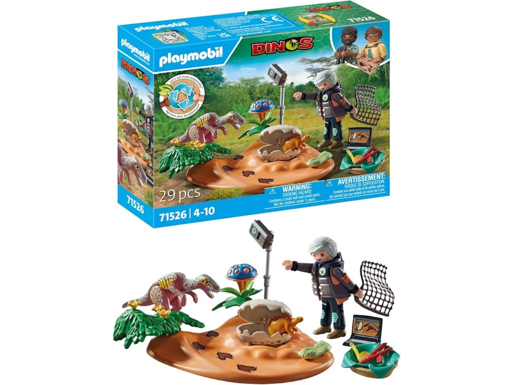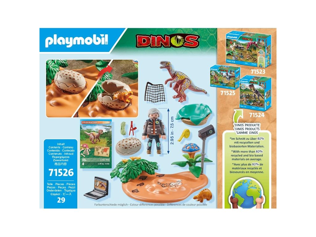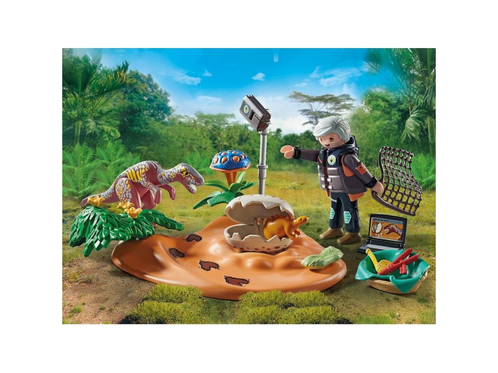Mládě Stegosaura se právě vylíhlo a jeho vývoj je se zájmem dokumentován.Zlodějský velociraptor má zpoždění na plánovanou hostinu! Obsahuje znalostní kartu dinosaura.Dinosauři jsou na svobodě se skvělou herní sadou PLAYMOBIL Stegosaurus Nest se zlodějem vajíček od PLAYMOBIL. Zatímco dinosauří výzkumník zkoumá vejce, připlíží se k němu chamtivý velociraptor. Ale chamtivý dinosaurus si počítal bez badatele. Obrovskou ještěrku odežene svou sítí. To znamená, že malý Stegosaurus se může v klidu vylíhnout z vajíčka. Dinosauří svět PLAYMOBIL zve děti od 4 let, aby se ponořily do vzrušujících dobrodružství při hraní rolí a znovu prožily fascinaci obřích ještěrů doma.