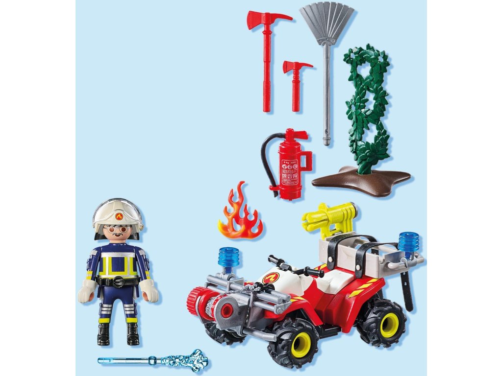 Tato sada obsahuje odvážného hasiče na čtyřkolce, který hasí hořící rostliny. Četné příslušenství umožňuje realistickou hru a zabaví děti na několik hodin. Toto je perfektní sada pro rozvoj představivosti a učení hrou.