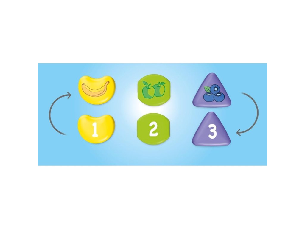 • příslušenství: 1 nákladní auto, 3 stohovací prvky, 3 ovocné prvky.