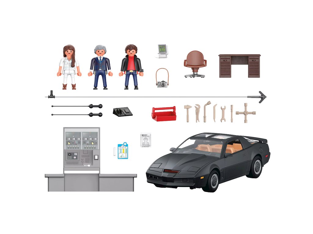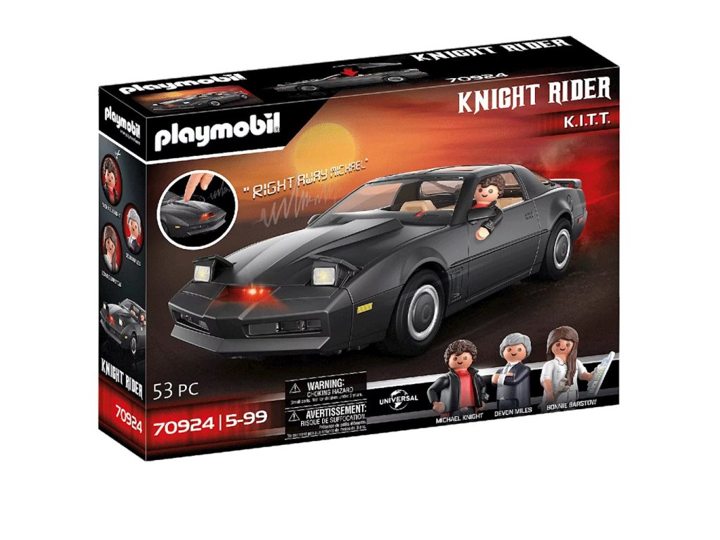 Playmobil Knight Rider - K.I.T.T. 70924K.I.T.T. - ikonický vůz z televizního seriálu 80. let se světelnými a zvukovými efekty a bohatě vybaveným interiérem. Stačí se dotknout kapoty a slyšet originální K.I.T.T. hlas auta a aktivujte světlo skeneru. Obsahuje postavy Michaela Knighta, Devona, Bonnie a další doplňky.