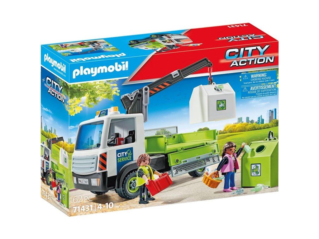 Nákladní auto na skleněné nádoby Playmobil 71431Péče o životní prostředí je zábava se skvělým vozem na recyklaci skla PLAYMOBIL. Pomocí otočného teleskopického jeřábu lze kontejner na láhve naložit do korby nákladního vozu během okamžiku. Chcete-li nádobu vyprázdnit, nakloňte ji na stranu. Četné detaily povzbuzují děti, aby si vyzkoušely a znovu vytvořily environmentální aktivity zblízka!