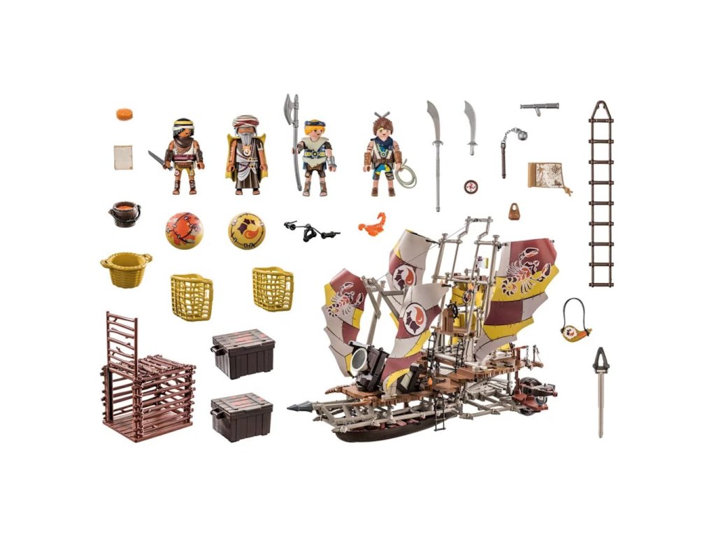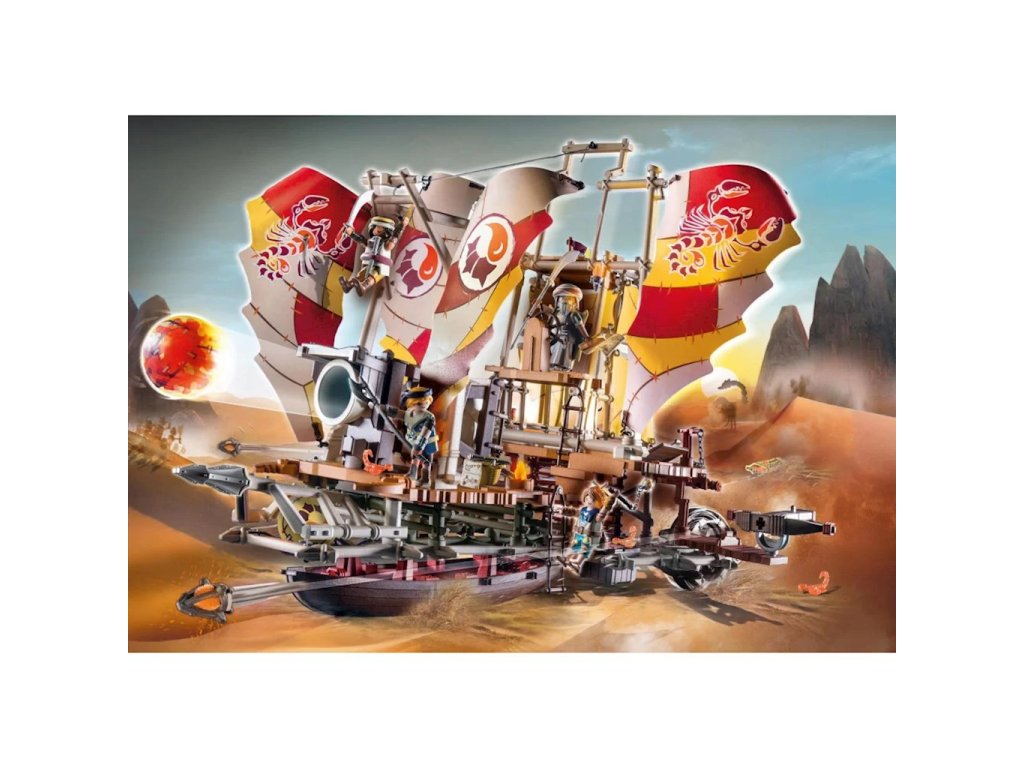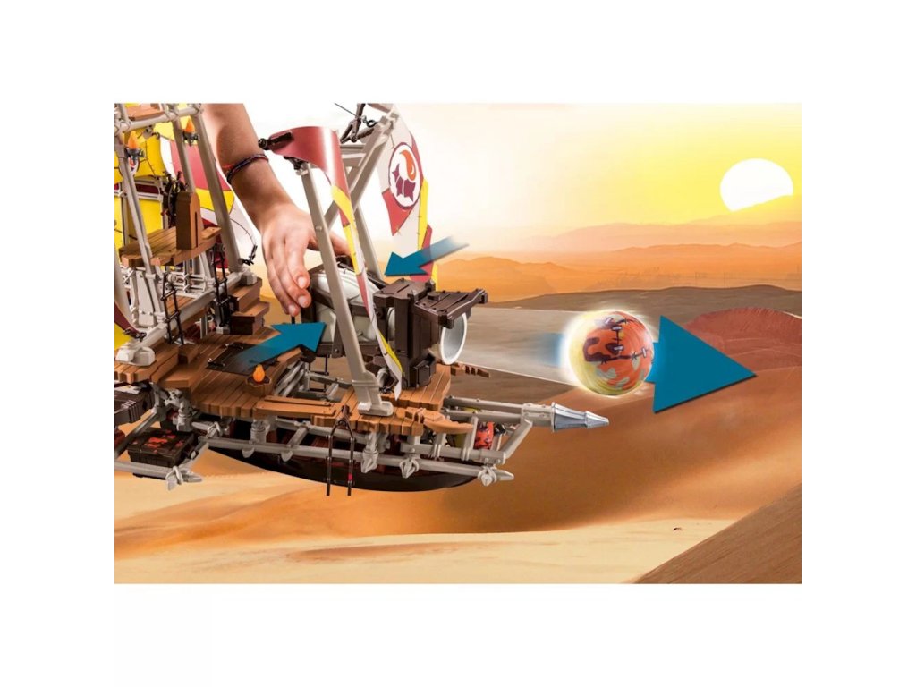Playmobil Novelmore Sal'Ahari Sand Storm Breakers 71023Jen slabé zasyčení oznamuje mocnou písečnou loď našich hrdinů, když bojují s kostrou armády v poušti Sal'Ahari. Postaveni ze zbytků vraku a vybaveni mnoha chytrými vynálezy, naši hrdinové čelí svým nepřátelům v závěrečné bitvě s Sand Storm Breaker. Odpovědí našich hrdinů je skvělý námořník, který obsahuje nový typ houbovitého projektilu, zipové lano a mechanické vystřelování projektilů.