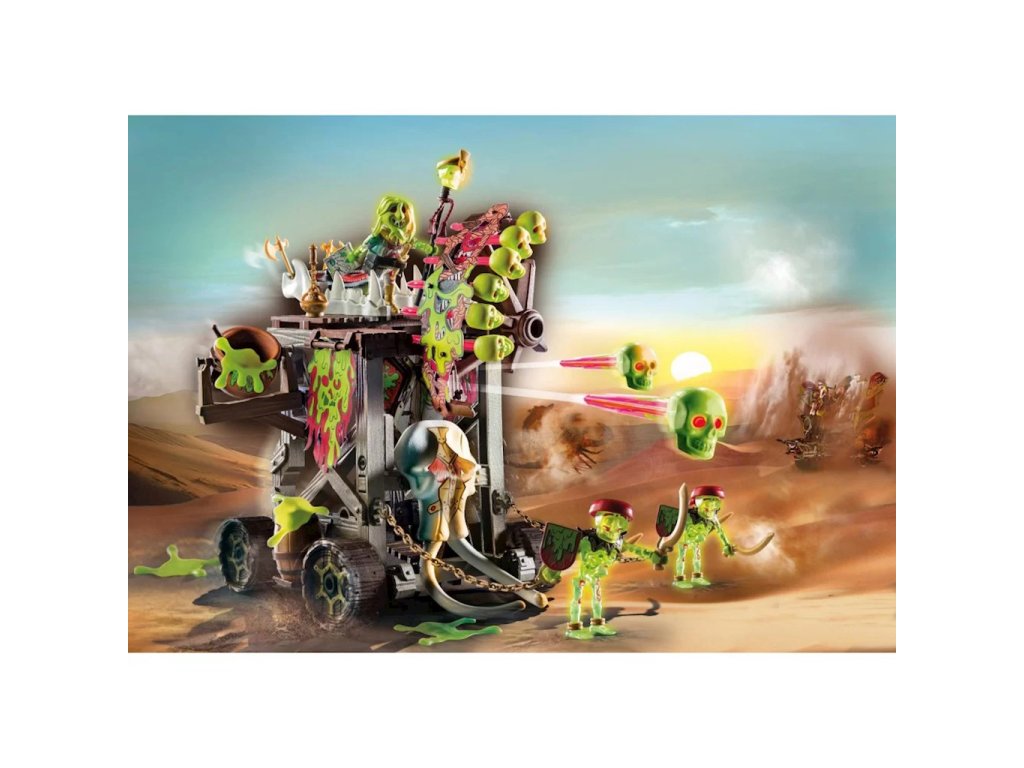 Playmobil Novelmore Sal'Ahari Sand S Stormcloak's Throne 71025Vzrušující sada, která přenese děti do kouzelného světa rytířů. Jeho mobilní útočná věž se rychle stane středem každého dobrodružství, zatímco armáda kostlivců s mechanickými vložkami projektilů děsí nepřátele. Kromě figurek obsahuje tato sada také širokou škálu příslušenství, jako jsou slizové projektily, řetězy, sekery a mnoho dalších dílů. Povzbuzuje děti, aby rozvíjely jejich představivost a kreativitu, a nechává je vytvářet vlastní příběhy!