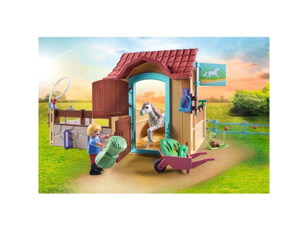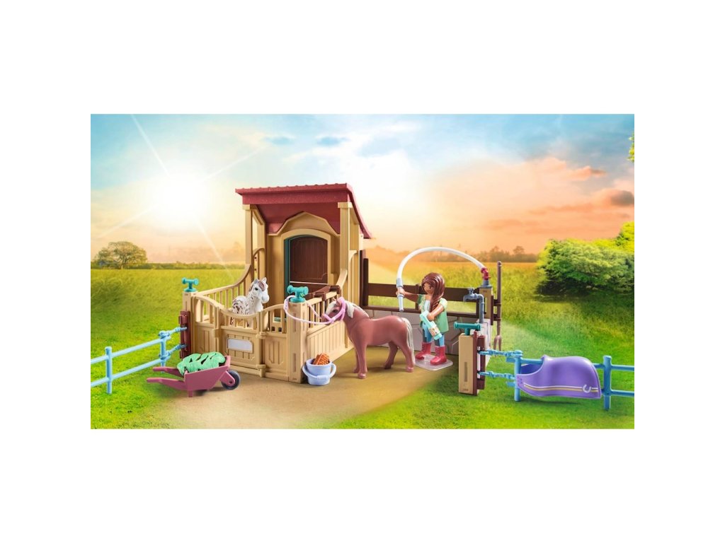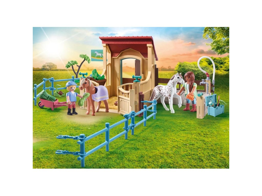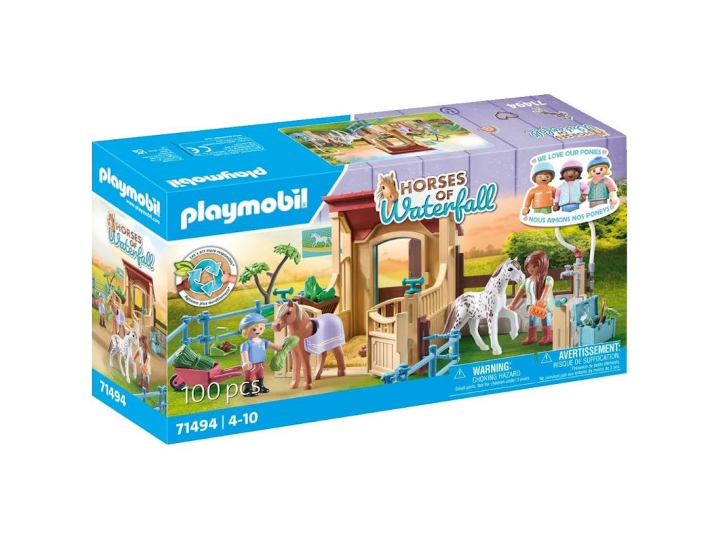 Playmobil Stáj 2 figurky + 2 koně 71494Vítejte v útulné stáji na Waterfall Ranch. Zde mají poníci dostatek prostoru v prostorném výběhu a je o ně s láskou postaráno. Denní péče o koně probíhá v mycí zóně, která je vybavena řadou doplňků pro péči o srst. Jakmile jsou vaši čtyřnozí přátelé čistí, mohou si odpočinout v uzamykatelné ponické stáji a vychutnat si porci čerstvého sena. Tato stáj je snem každého poníka!