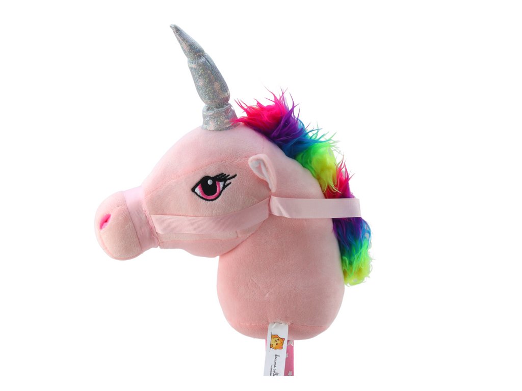 Hůl, na které je umístěn plyšový jednorožec, je ozdobena růžovým materiálem s hvězdičkami, což jí dodává kouzlo a činí ji pro děti ještě atraktivnější. Je pohodlná i pro děti, protože měkký materiál zajišťuje pohodlnou a bezpečnou hru.
