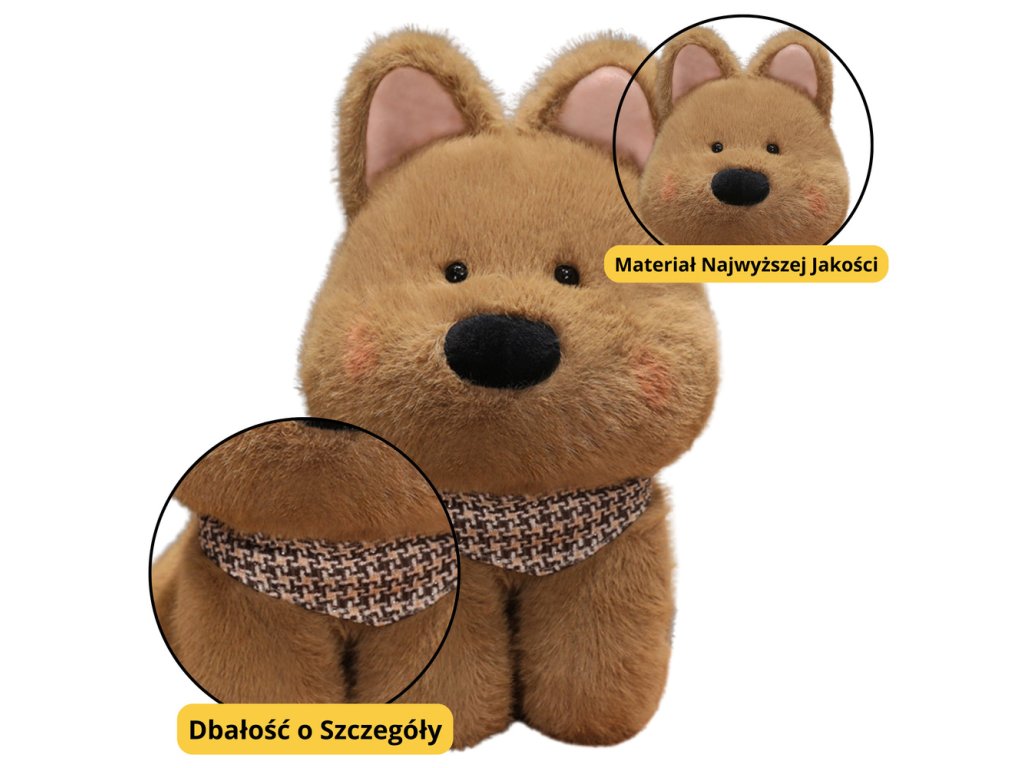 Maskot je vyroben z kvalitního hebkého plyše, který je pro děti naprosto bezpečný a vybízí k mazlení. Díky stabilnímu sedu vypadá pejsek skvěle jak jako parťák na hraní, tak jako dekorace do dětského pokoje. Ideální jako plyšová hračka na spaní, společník na cesty nebo dárek pro milovníka sladkých plyšáků.
