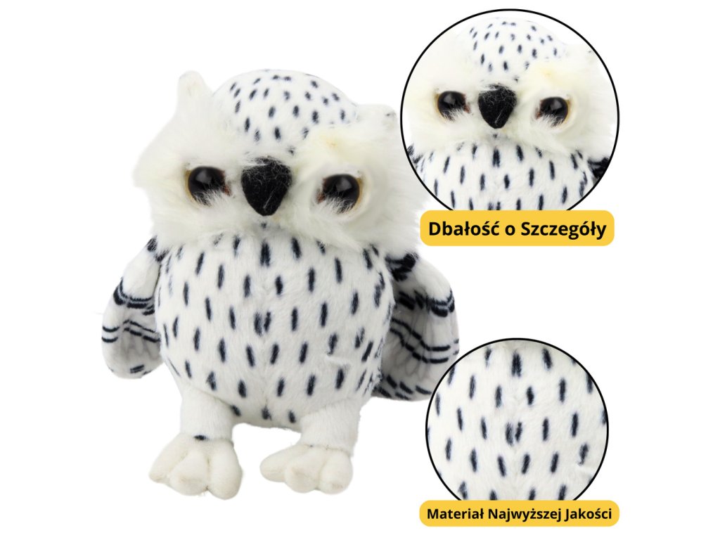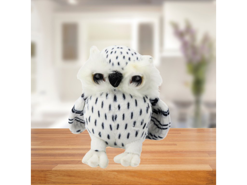 Plyšová sova je okouzlující, kompaktní maskot, který potěší svým designem a jemností. Vyrobeno z na dotek příjemného plyše, s jemným melírovaným vzorem a velkýma výraznýma očima, které mu dodávají jedinečný charakter. Černobílá barva odkazuje na vzhled skutečných sov, díky čemuž je hračka nejen estetická, ale i edukativní.