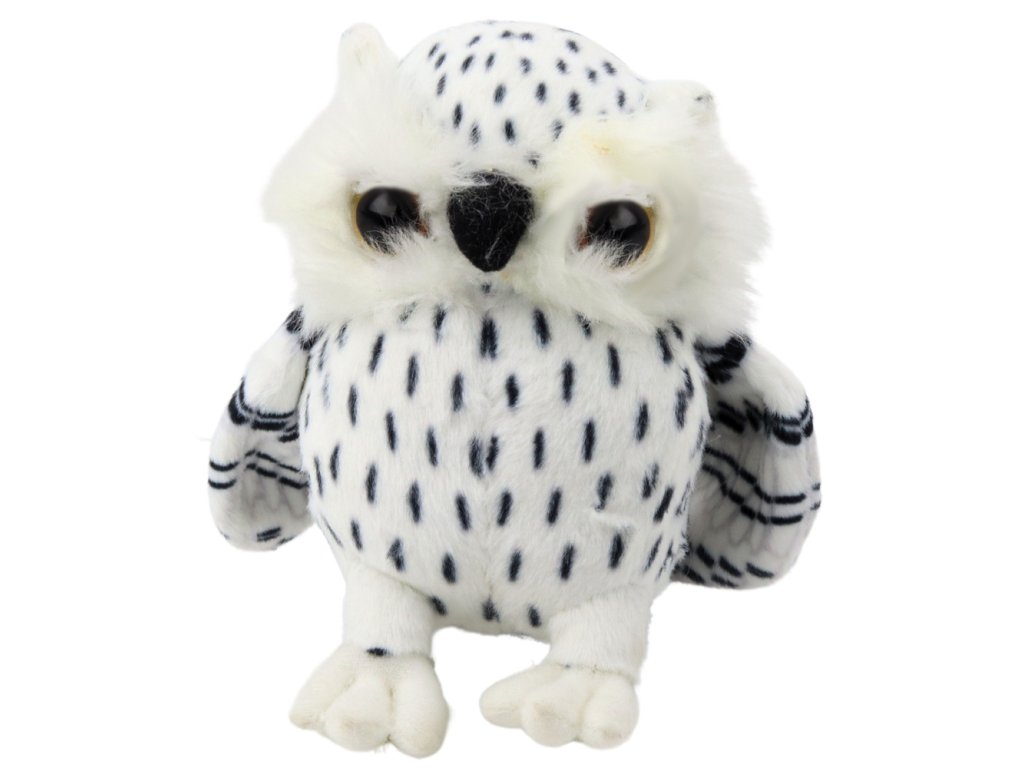 Plyšová malá sova maskot mazlivá hračka bílá s černými tečkami 15 cm