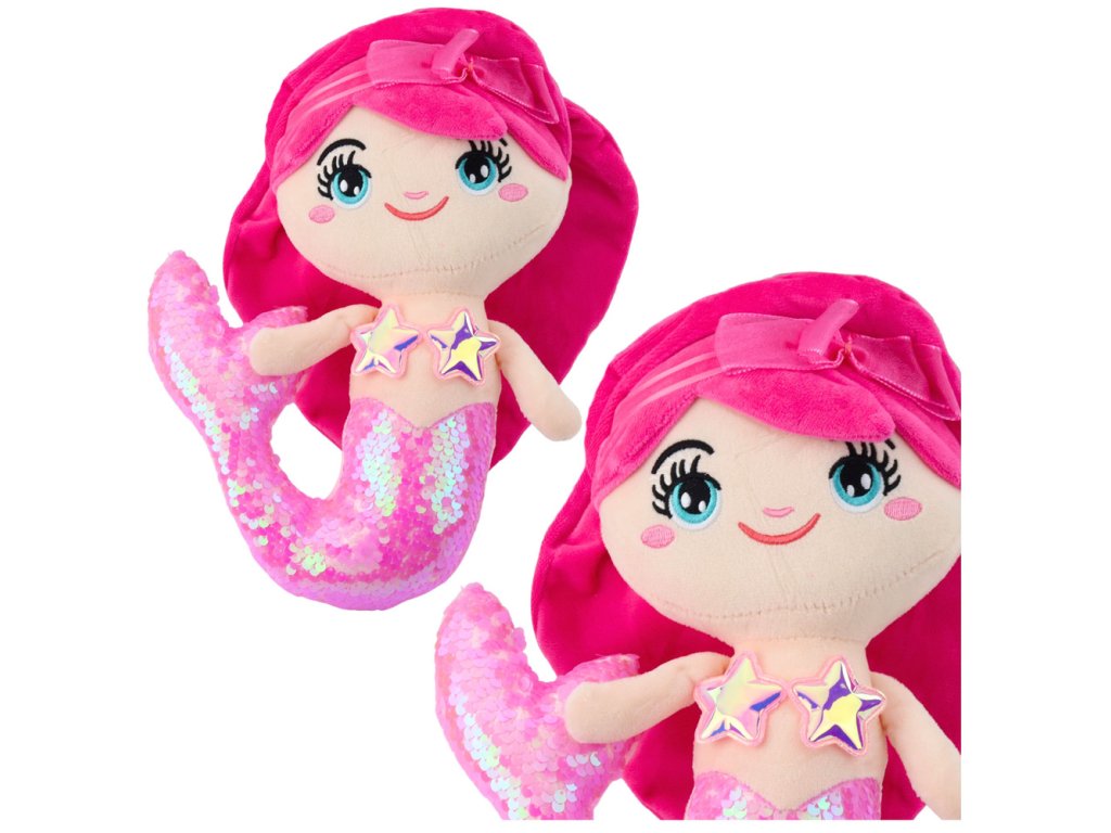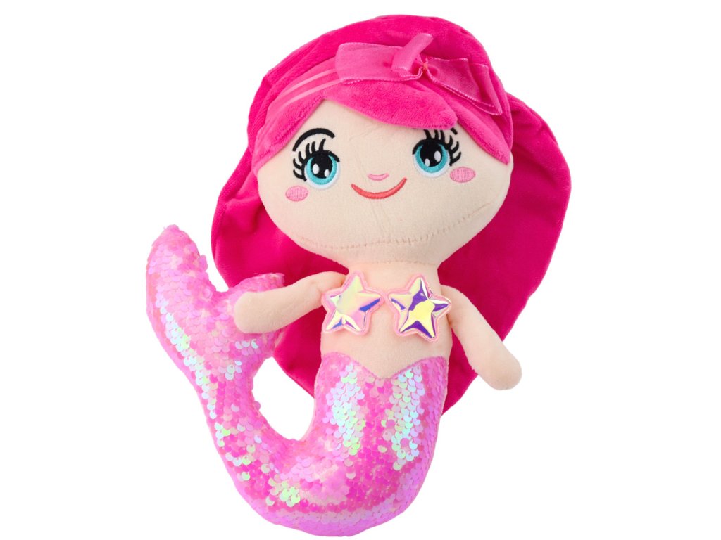 Plyšová mořská víla je okouzlující hračka, která svým vzhledem a kouzelným efektem změny barvy flitrů potěší každé dítě. Díky měkkému materiálu a pečlivě zpracovaným detailům je ideální na mazlení, hraní a zdobení dětského pokoje.