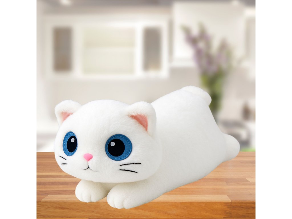 Plyšový maskot ve tvaru ležící bílé kočky je okouzlujícím, pečlivě vyrobeným a funkčním doplňkem, který osloví děti i dospělé. Díky svému přívětivému vzhledu, kompaktnímu tvaru a praktickým rozměrům je ideální pro každodenní mazlení, odpočinek i jako dekoraci interiéru - na postel, poličku nebo do dětského koutku.