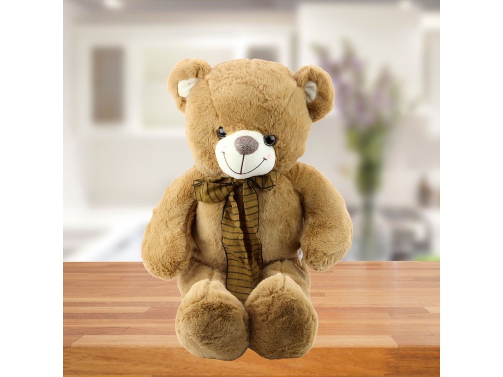 Plyšový Maskot Mazlík Medvěd S Hnědou Mašlí V Pruhu 60cm
