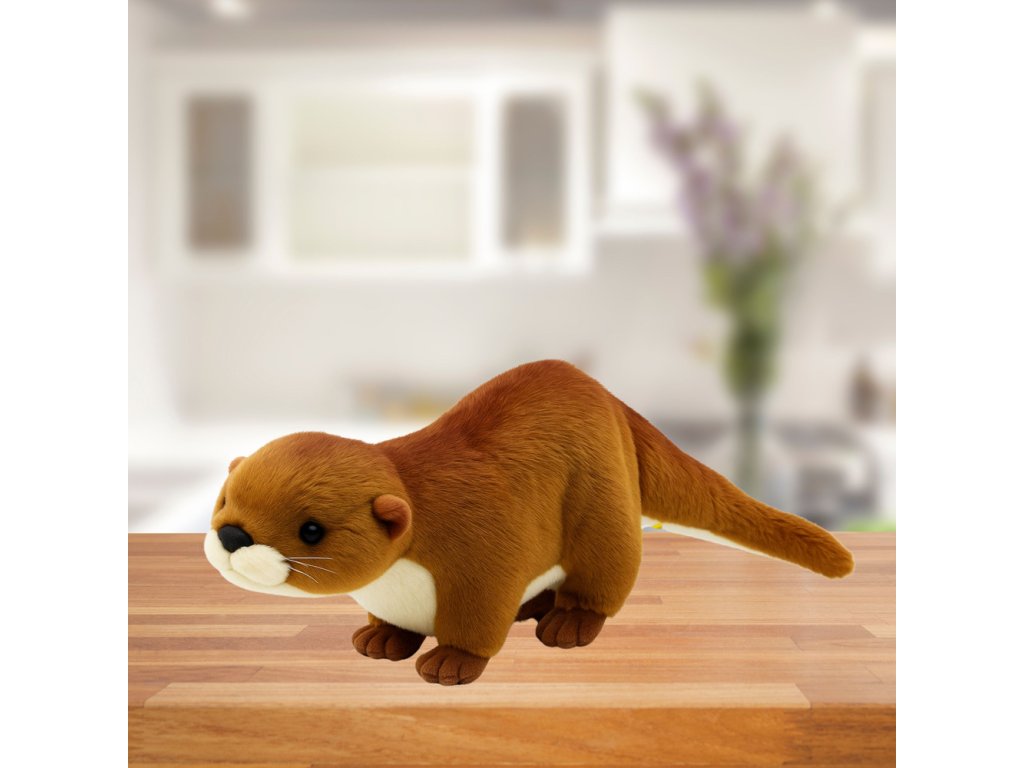 Realistická plyšová vydra v odstínech hnědé je jedinečná hračka pro děti, které milují divokou přírodu a neobvyklé maskoty. Jeho anatomický tvar, protáhlé tělo a charakteristická tlama činí plyšáka podmanivým svou autenticitou. Měkká, krátká srst a jemné linie siluety zdůrazňují přirozený vzhled tohoto okouzlujícího zvířete.