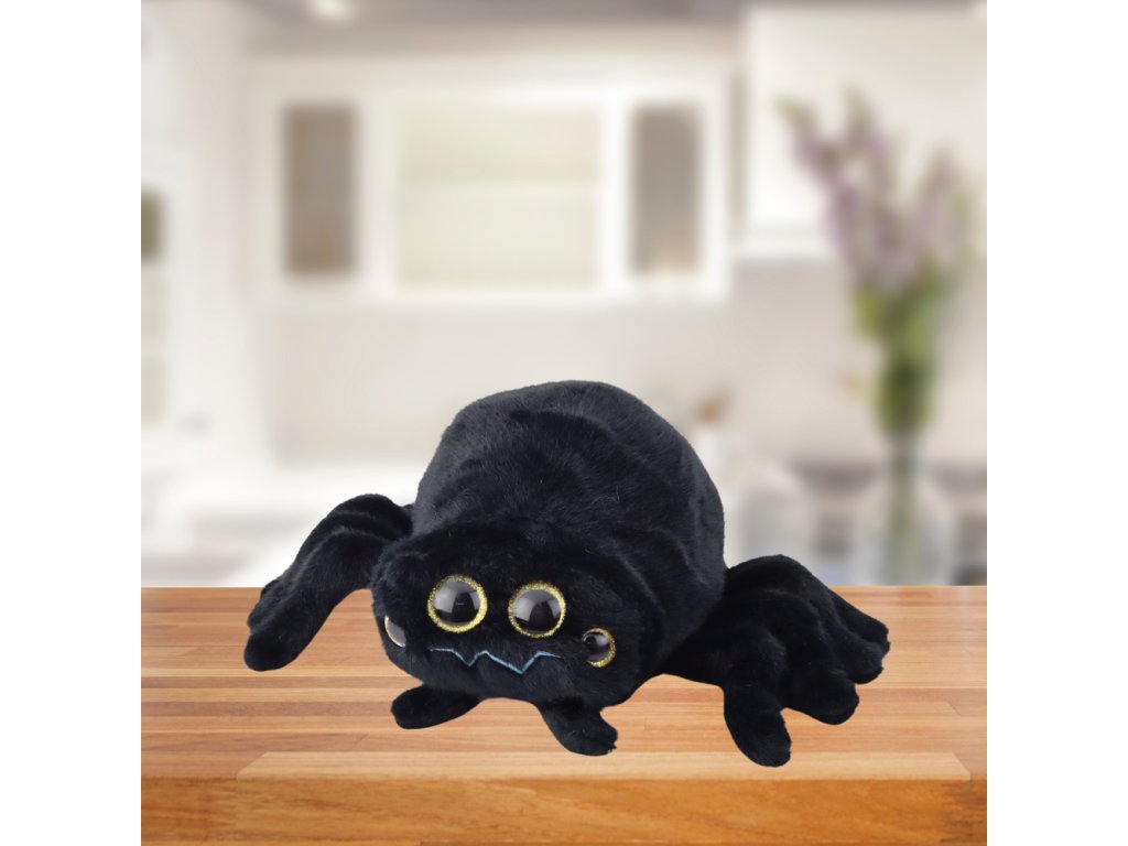 Plyšový pavouk je originální a mimořádně efektní hračka, která jistě zaujme děti, které mají rády neobvyklé maskoty, hmyz a přírodní kuriozity ze světa přírody. Je vyrobena z jemného, na dotek sametového plyše v syté, černé barvě, která mu dodává lehce tajemný, ale zároveň přátelský a vtipný vzhled. Maskot vyniká pečlivě propracovanými detaily - má několik párů lesklých očí v různých velikostech, měkké, zaoblené nohy a jemně vyšívaný čenich s úsměvem, díky kterému vypadá výjimečně půvabně a nevzbuzuje strach - ani u mladších dětí.