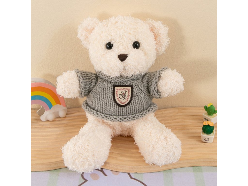 Medvídek v šedém svetru je klasický a zároveň výjimečně okouzlující maskot, který dokonale spojuje nadčasové kouzlo tradičních plyšových hraček s estetickým a stylovým akcentem - pleteným oblečkem v decentní, šedé barvě. Hračka je vyrobena z kvalitního, hebkého a heboučkého plyše v odstínu bílé, který je příjemný na dotek a bezpečný i pro nejmenší děti. Hustá srst, zaoblené tlapky a pěkný obličej s tvrdým nosem a očima tvoří harmonický, přátelský celek, který potěší svou přirozeností.