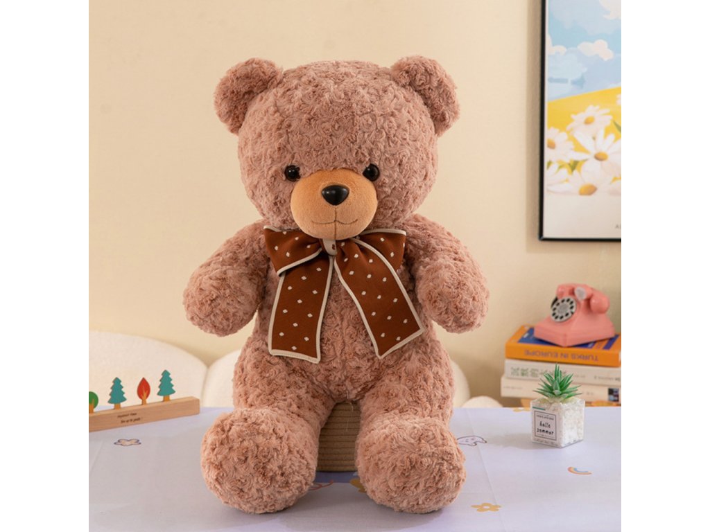 Plyšový maskot mazlivý medvěd s mašlí puntíkovaný 45 cm
