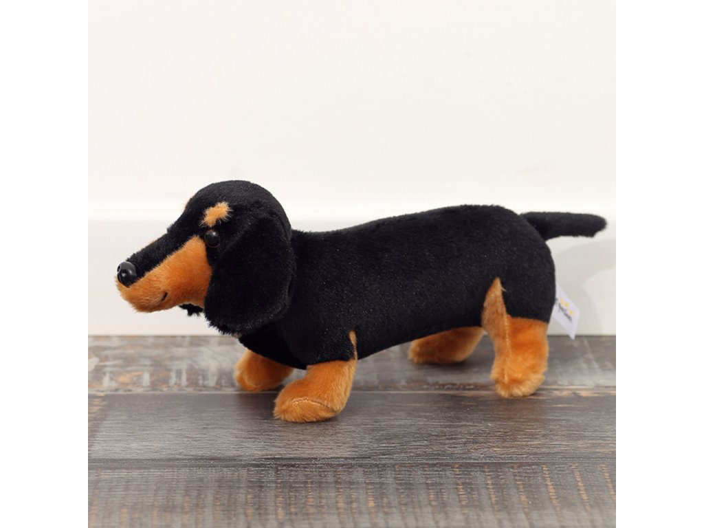 Plyšový jezevčík je výjimečně okouzlující plyšová hračka, která svým realistickým vzhledem, smyslem pro detail a měkkou formou okamžitě upoutá dětskou pozornost. Hračka je vyrobena z kvalitního, na dotek příjemného plyše v tmavém odstínu, který navíc podtrhuje její přírodní charakter. Dlouhé, štíhlé tělo, krátké tlapky, svěšené uši a pěkný čenich mu dodávají jedinečný vzhled a na první pohled vzbuzují důvěru a sympatie.