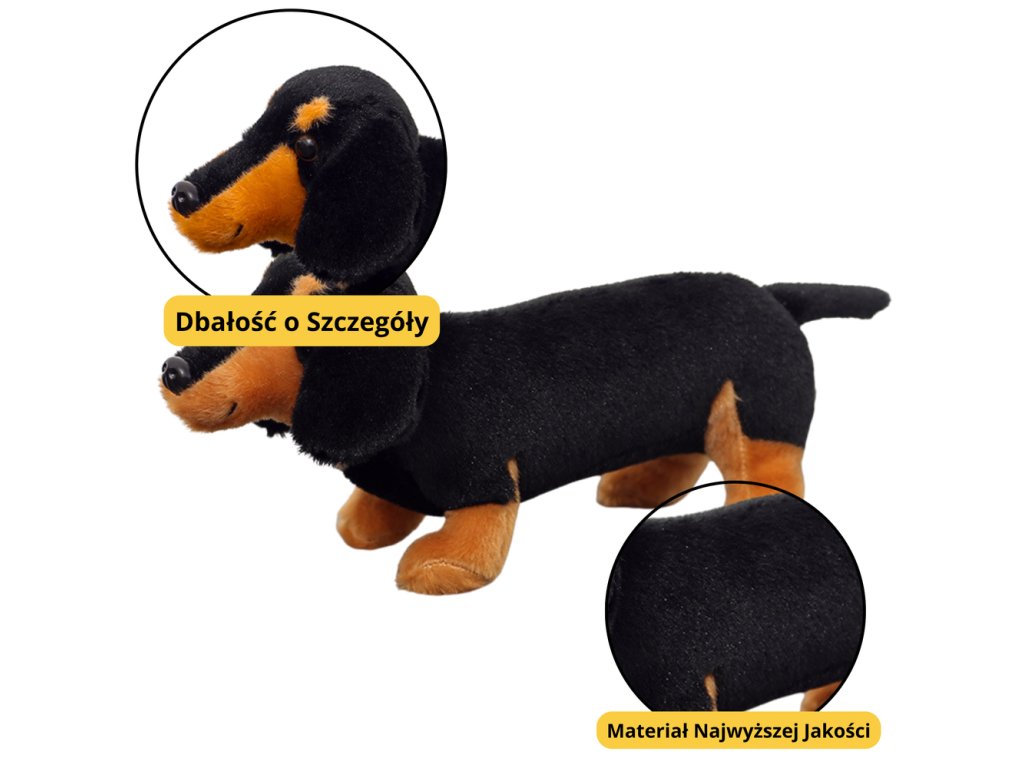 Díky svým optimálním rozměrům je hračka výjimečně šikovná - ideální na nošení, mazlení a s sebou všude tam, kde dítě svého malého kamaráda potřebuje. Skvěle funguje jak jako věrný společník pro každodenní hry, tak jako okouzlující dekorativní prvek v dětském pokoji, který vnáší teplo a útulnost. Je to také skvělý tip na dárek - pejsek jezevčíka potěší každé dítě bez rozdílu věku a od prvního objetí se stane oblíbeným maskotem.