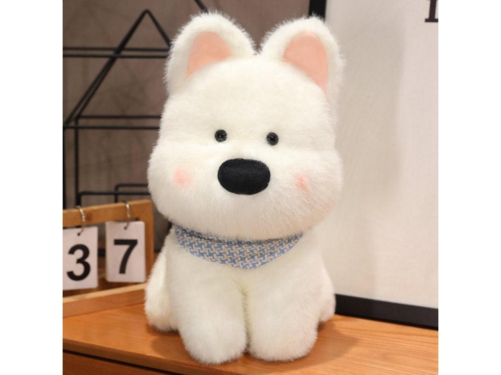 PLYŠOVÝ PEJSEK BÍLÉ MILOVACÍ HRAČKA SE ŠÁTEM 33CM
