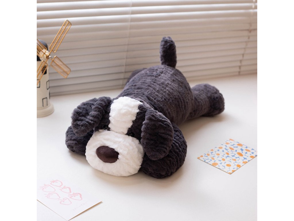 Jeho pěkná tvářička s velkým nosem, dlouhýma svěšenýma ušima a nadýchaným ocasem mu dodávají výjimečně přátelský a vtipný vzhled. Zvíře leží v pohodlné, přirozené poloze s tlapkami nataženými dopředu a dozadu, díky čemuž vypadá jako skutečné štěně. Tato forma podněcuje dětskou fantazii, vybízí je k vytváření scén a příběhů se psem, což podporuje emocionální rozvoj a kreativitu těch nejmenších.